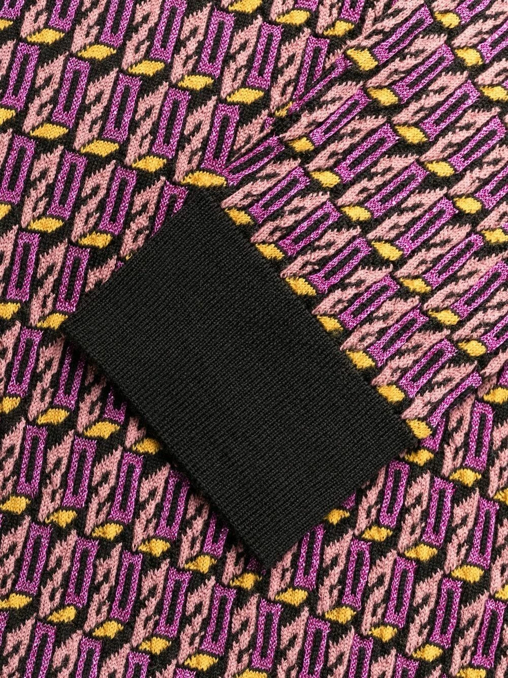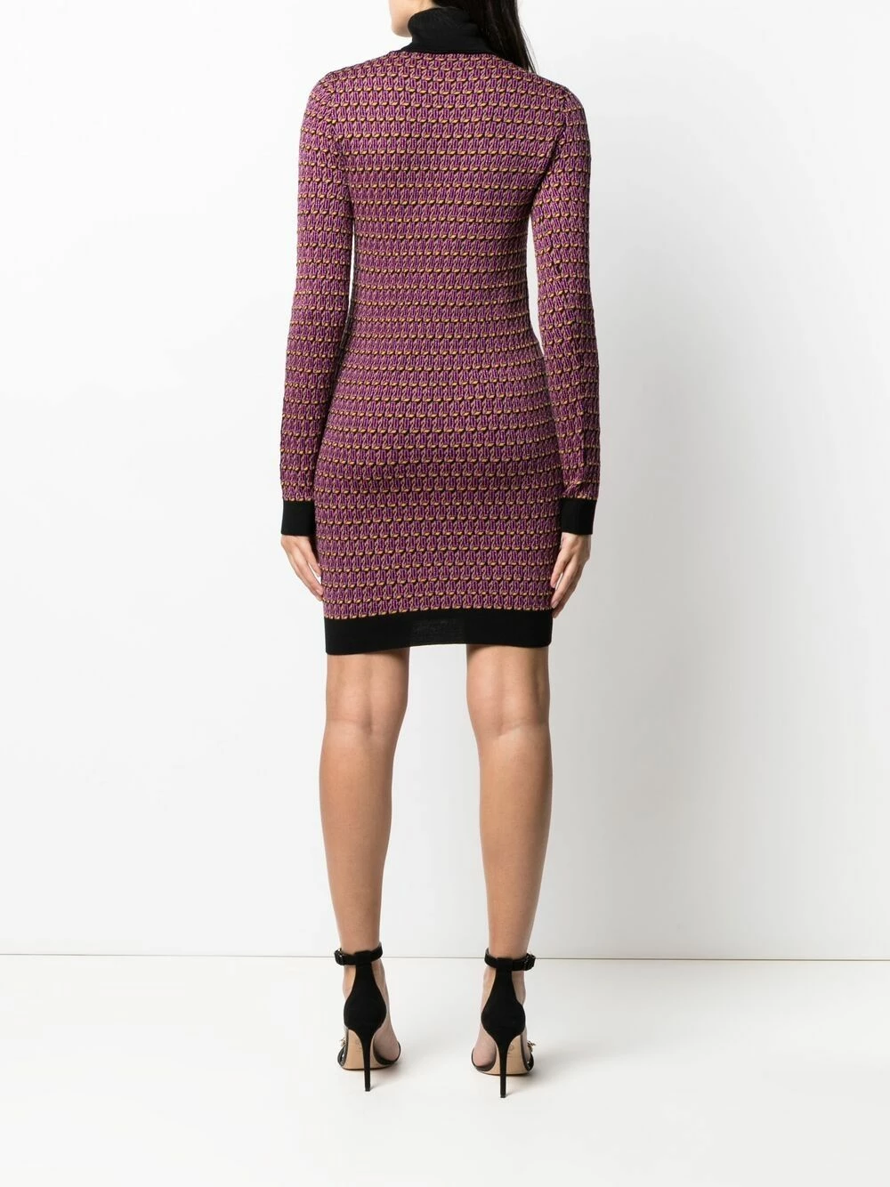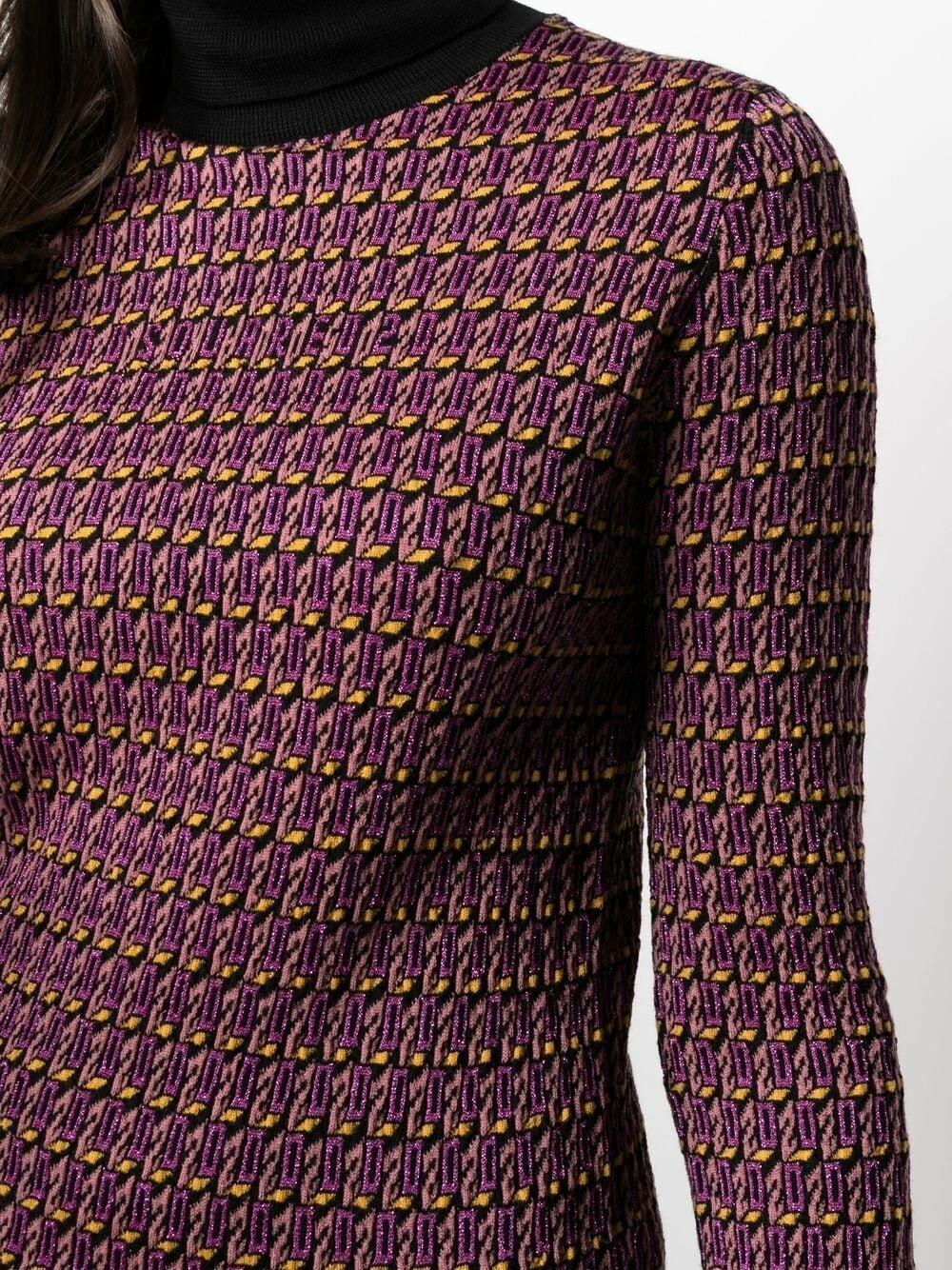 Motif monogrammé, col roulé, manches longues, ourlet droit, bordures nervurées, construction stretch.