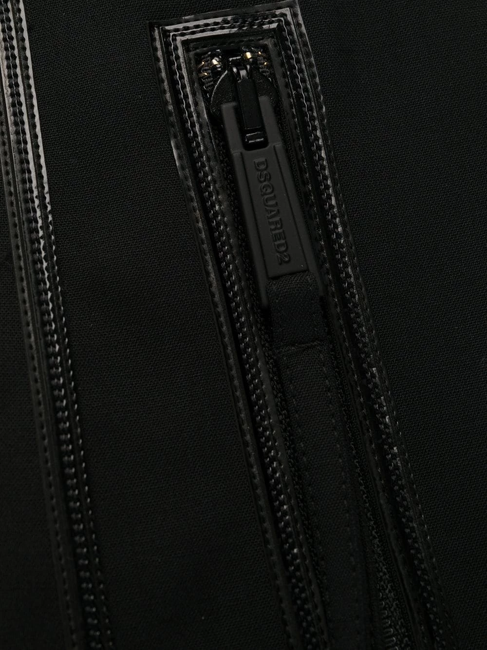 Robe The Biker Dsquared2 avec détails de surpiqûres, col montant, boutons pression, fermeture zippée devant, coupe ajustée, poches devant zippées, manches trois quarts, poignets zippés et ourlet droit. Couleur : noir.