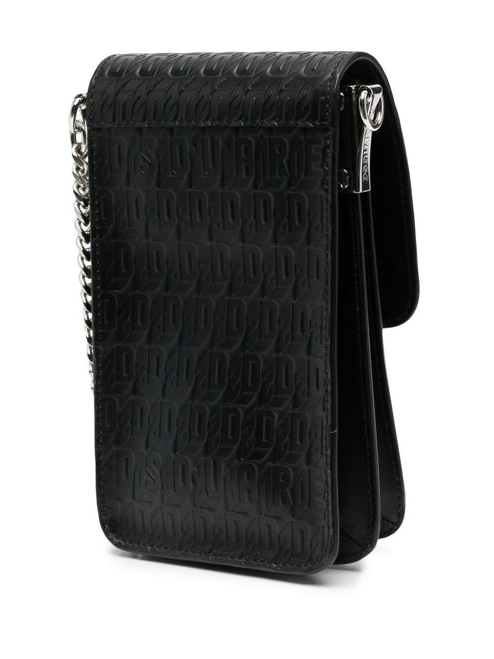 Motif monogrammé embossé, bride porté épaule détachable et ajustable, patch logo sur le devant, détails de chaînes, rabat sur le dessus à fermeture magnétique. Couleur : noir.