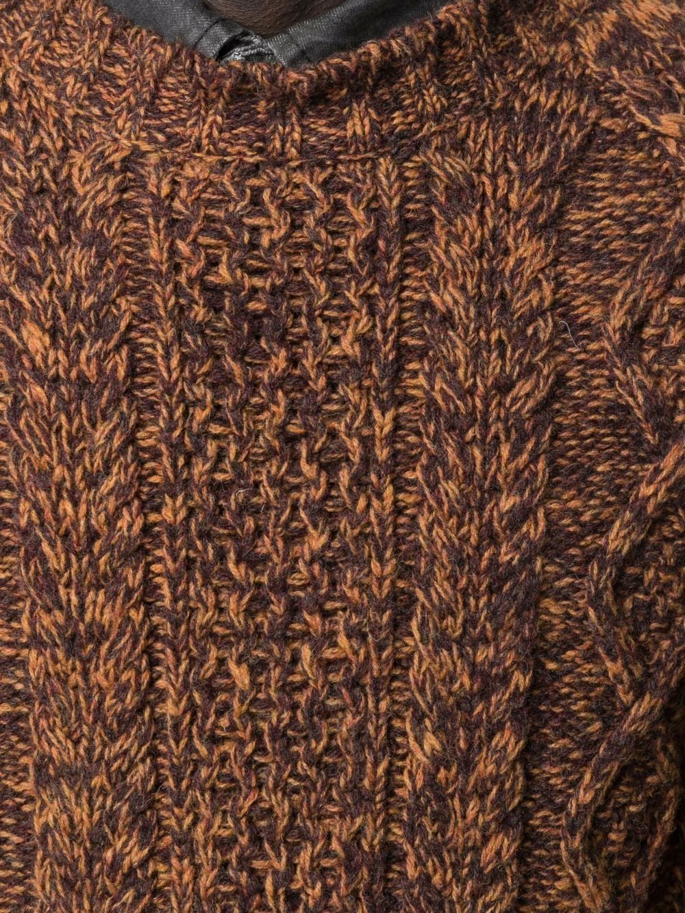 Modèle bicolore, maille épaisse, encolure ronde, manches longues. Matière : laine.