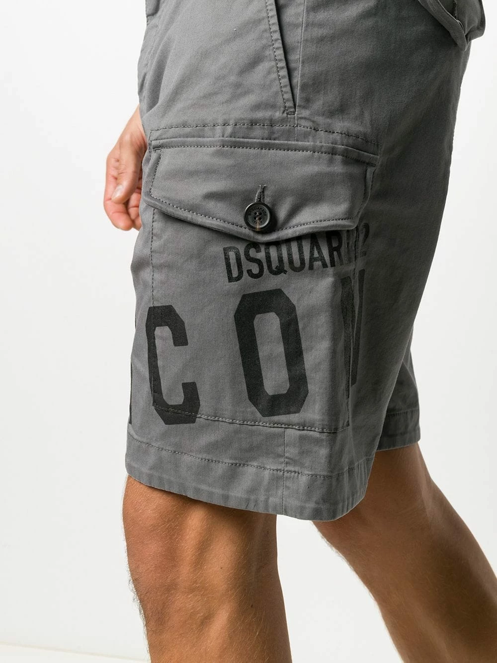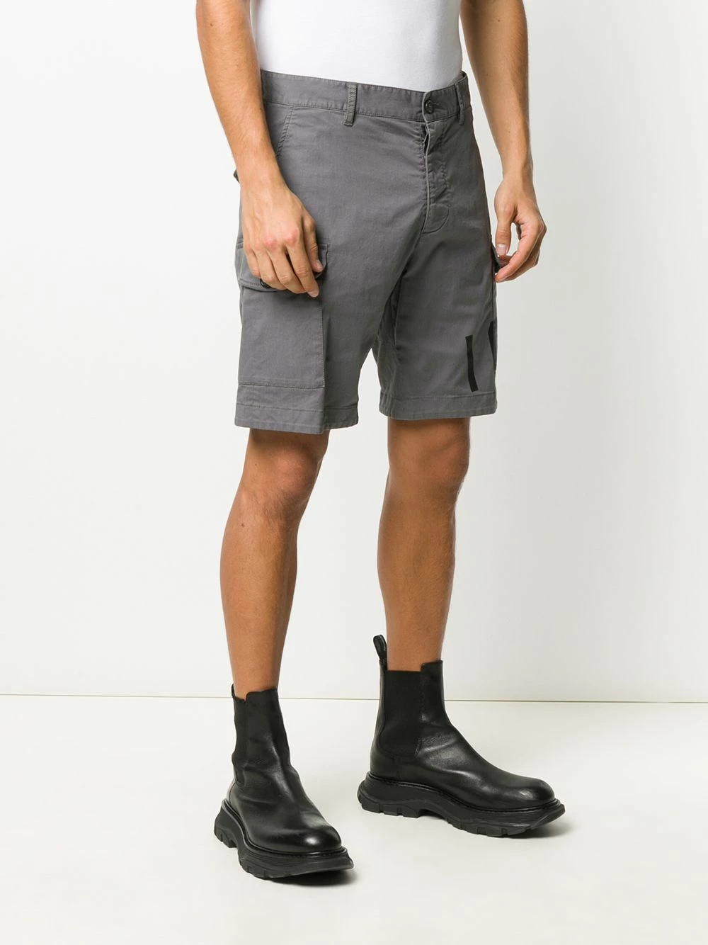 Ourlet droit, passants de ceinture, bouton et zip et poches latérales. Couleur: gris. Matière: coton mélangé.