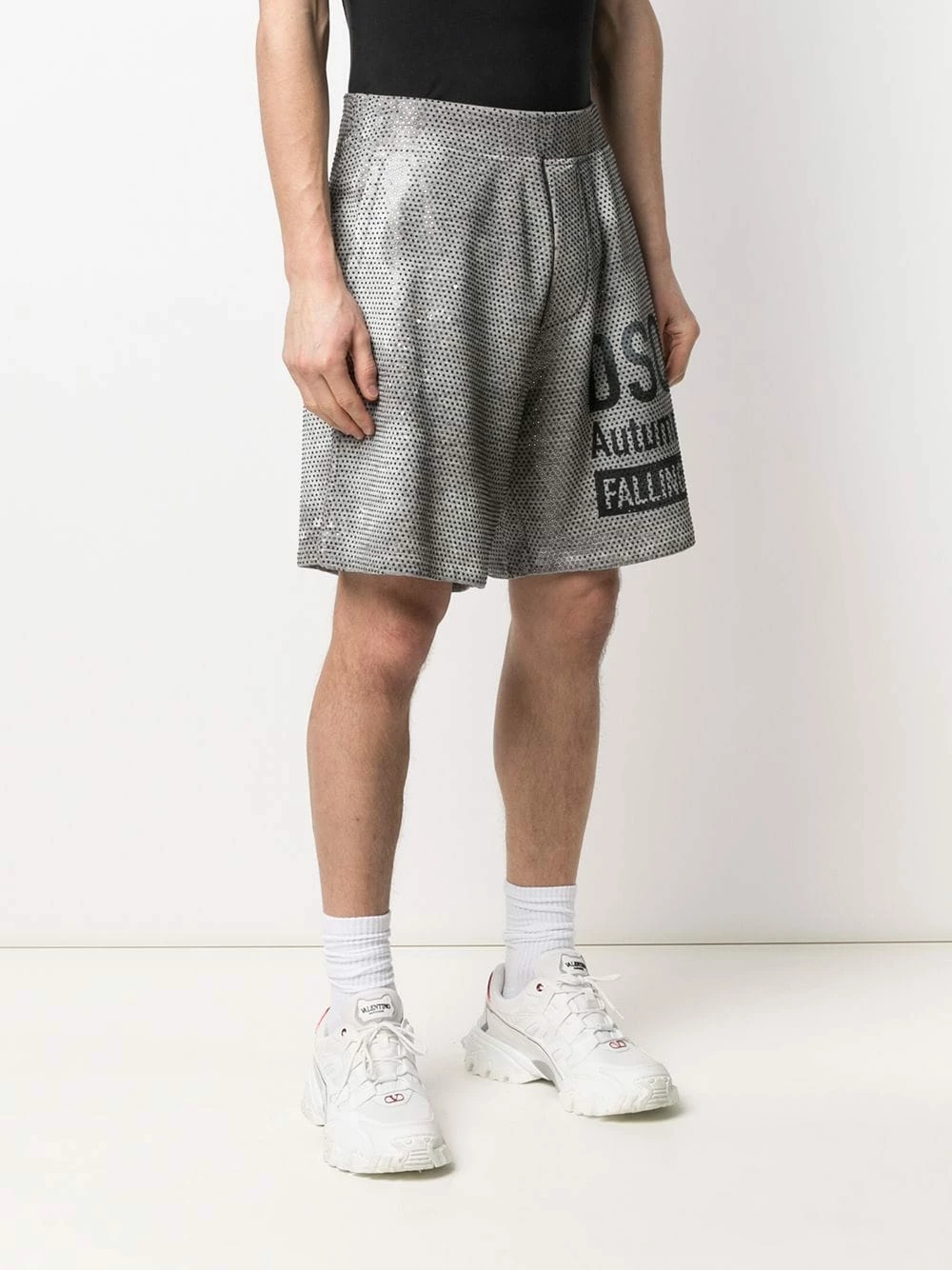 Taille haute, détail en résille, coupe courte. Couleur : Gris. Matière : coton.