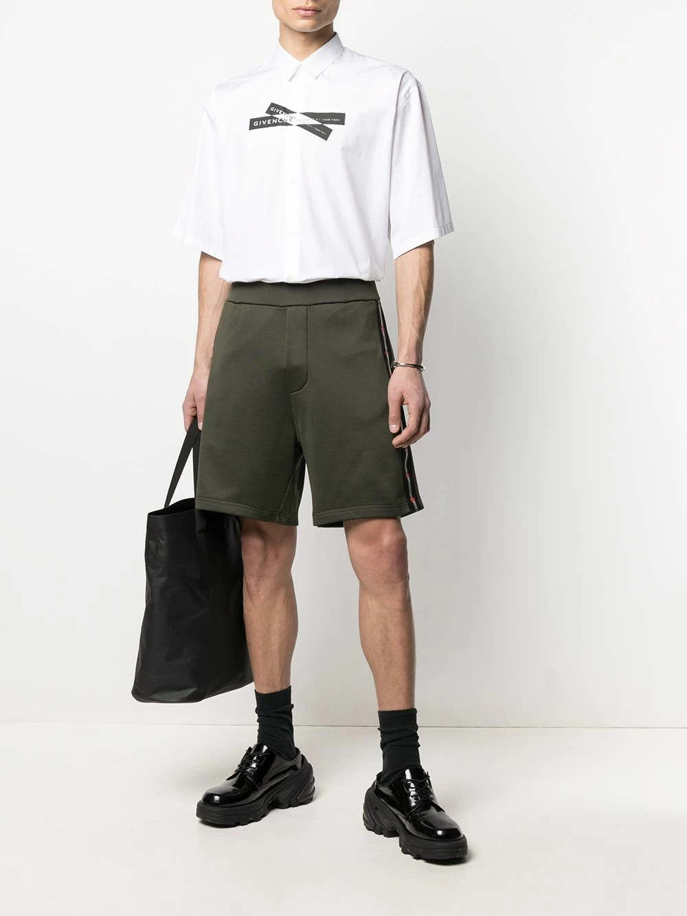 Ceinture élastique, finition à bande logo, hauteur genou. Couleur : vert.
