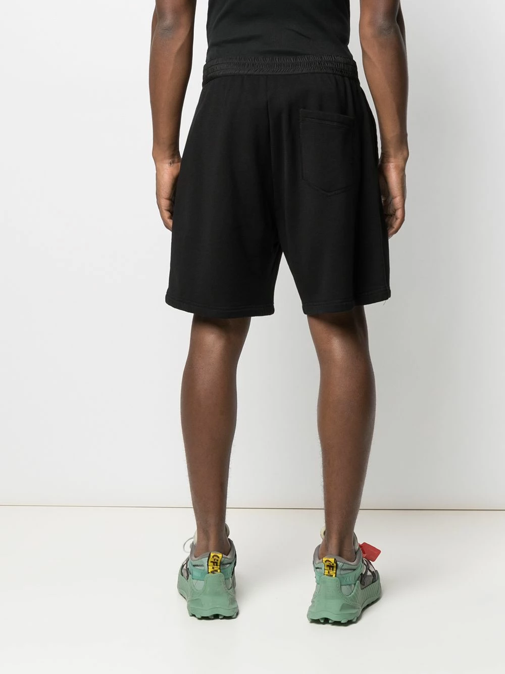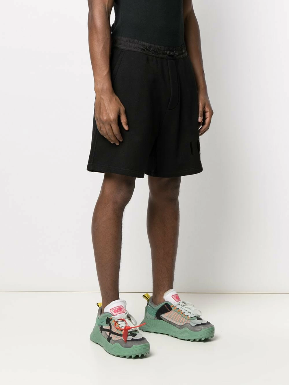Logo imprimé sur le devant, ceinture élastique, fermeture duffle-coat sur le devant, coupe ample, hauteur genou, poches latérales fendues, poche arrière plaquée. Couleur : Noir. Matière : coton.
