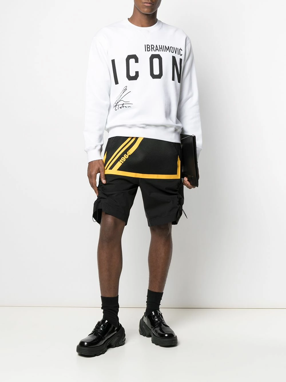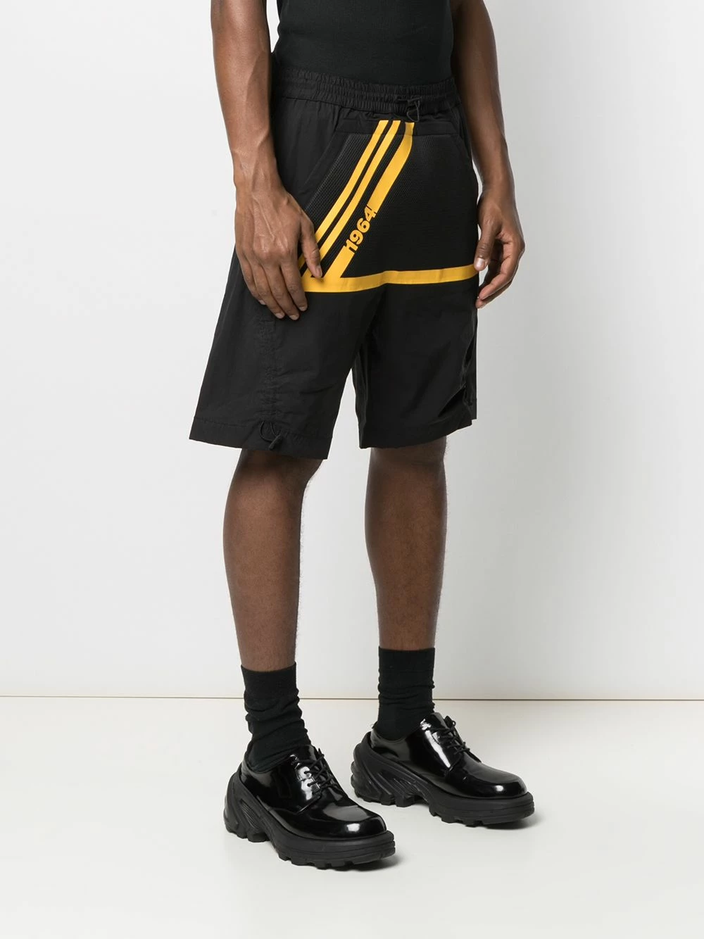 Logo imprimé sur le devant, ceinture élastique, coupe ample, hauteur genou, poche plaquée sur le devant, deux poches arrière zippées. Couleur : Noir.