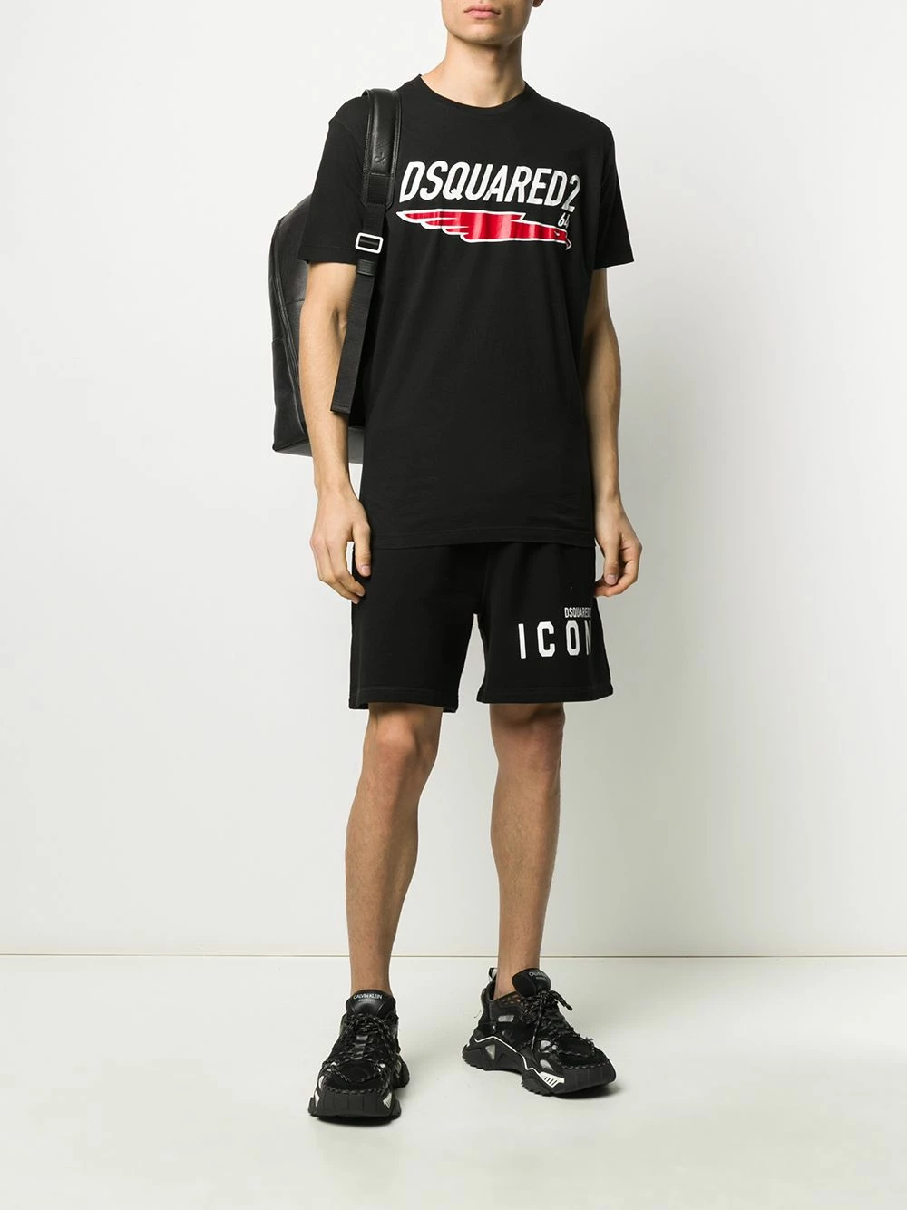 Short de jogging à logo imprimé en coton Dsquared2 avec logo imprimé sur le devant, bordure nervurée, ceinture élastique, poches latérales fendues, poches arrière et hauteur genou.