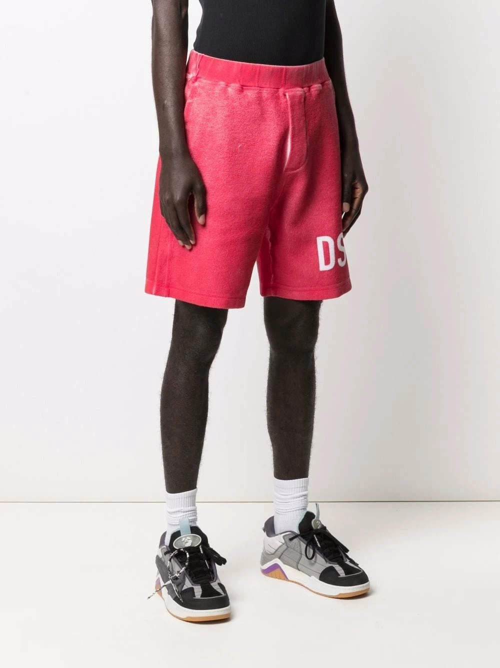 Ceinture élastique, poche arrière plaquée, longueur au dessus du genou, logo imprimé sur la cuisse. Couleur : rouge. Matière : coton.