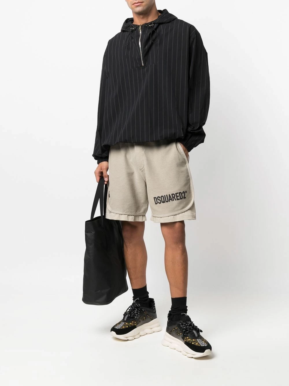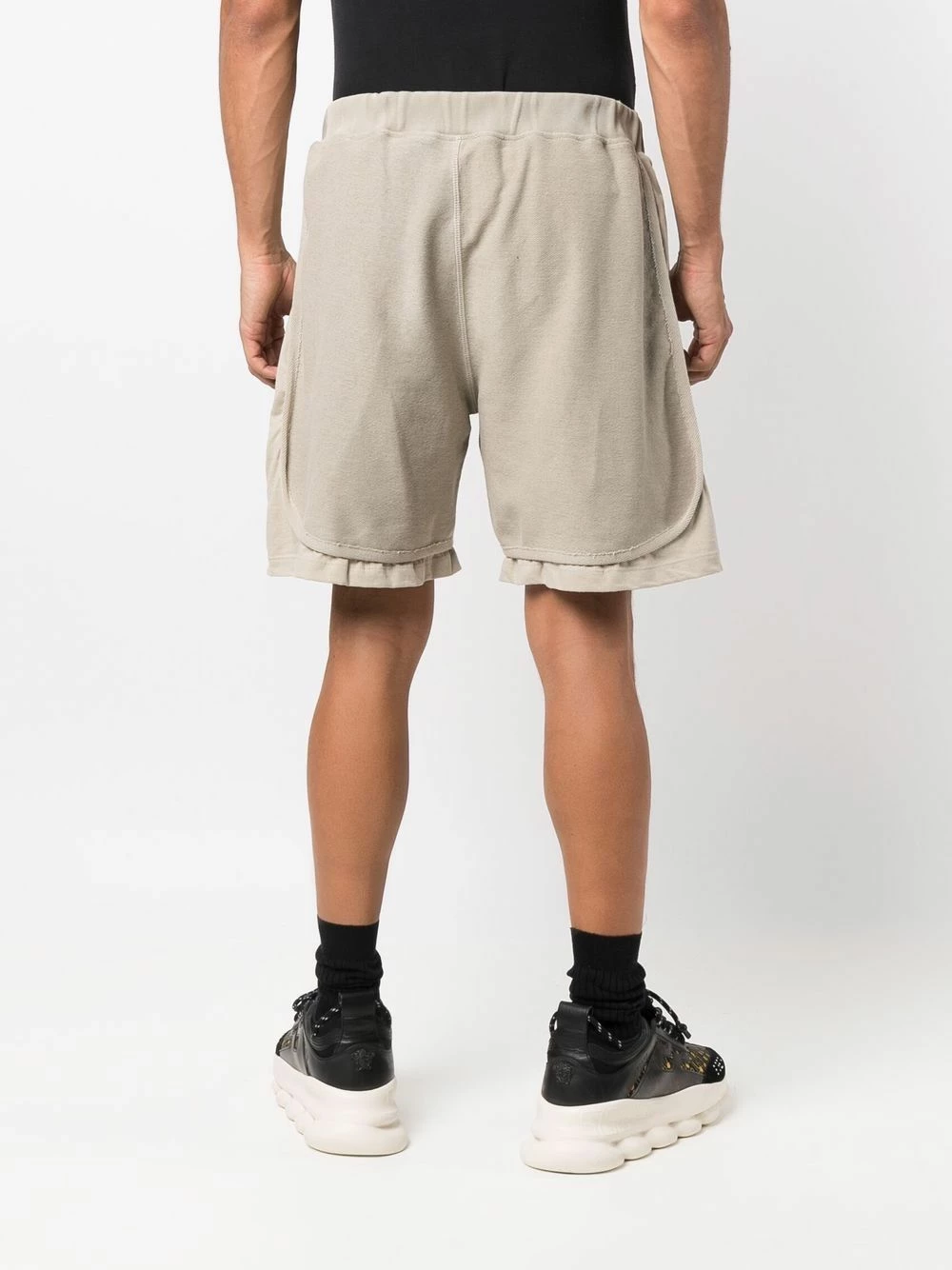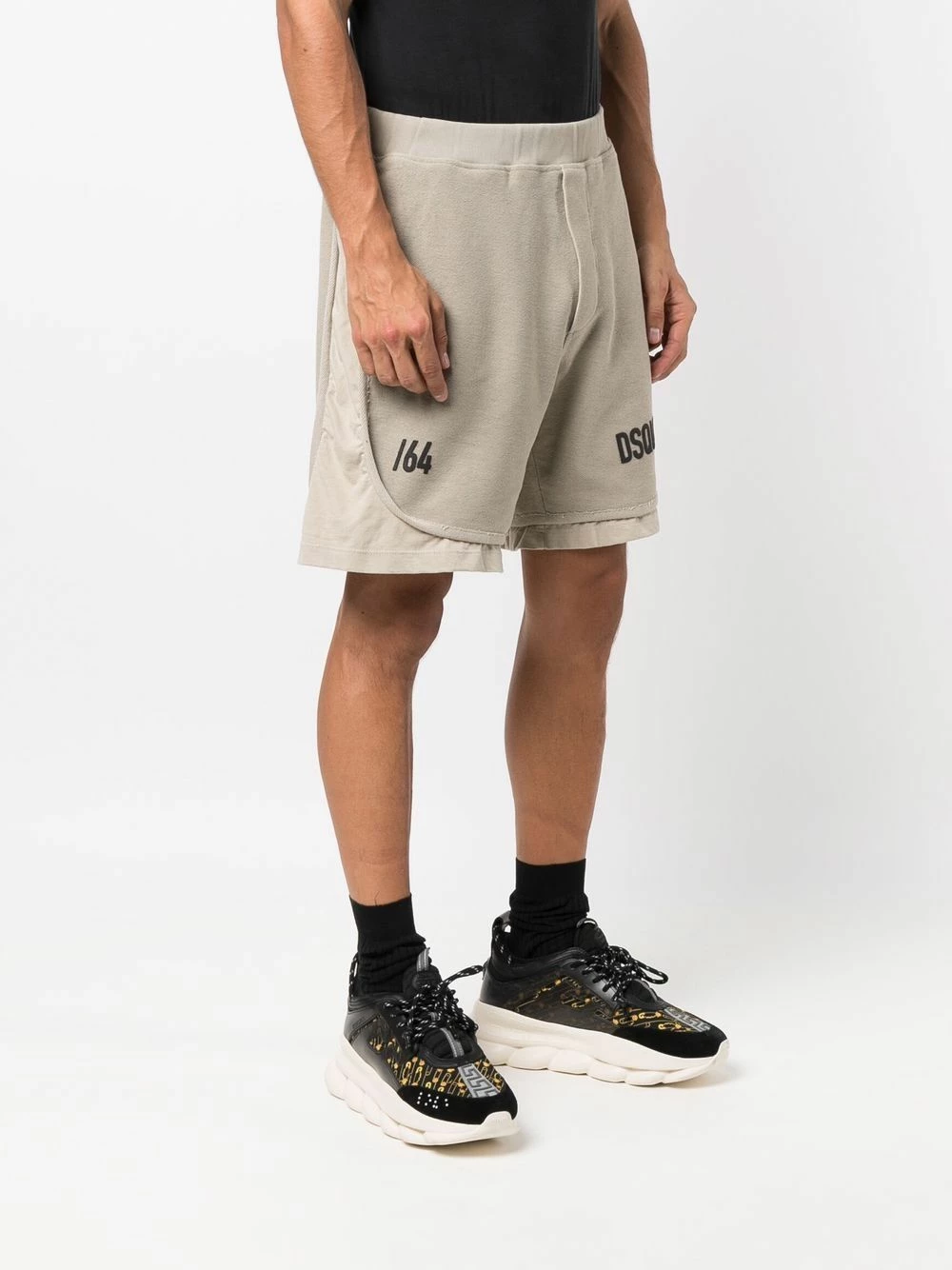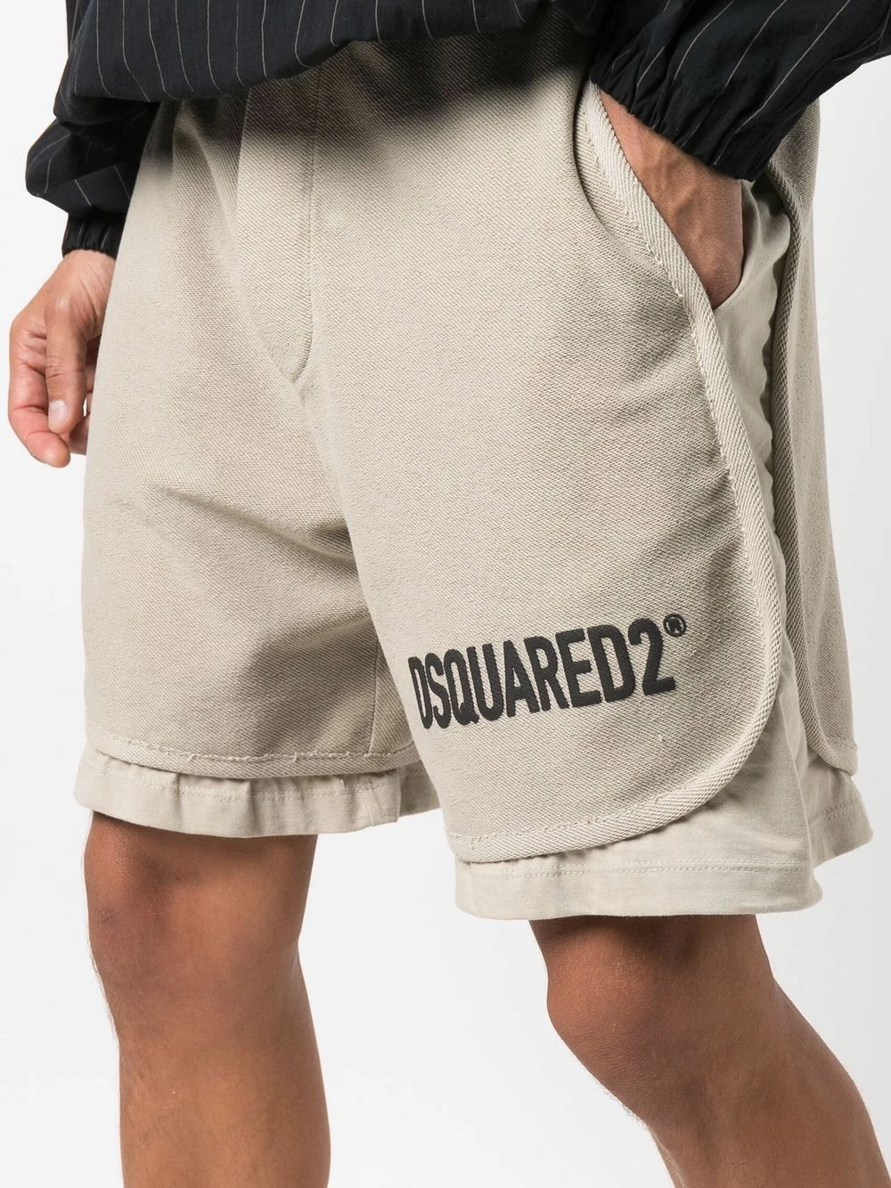 Logo imprimé sur la cuisse, effet superposé, ceinture élastique, deux poches latérales fendues. Matière : coton.