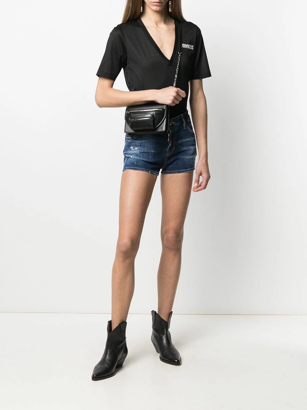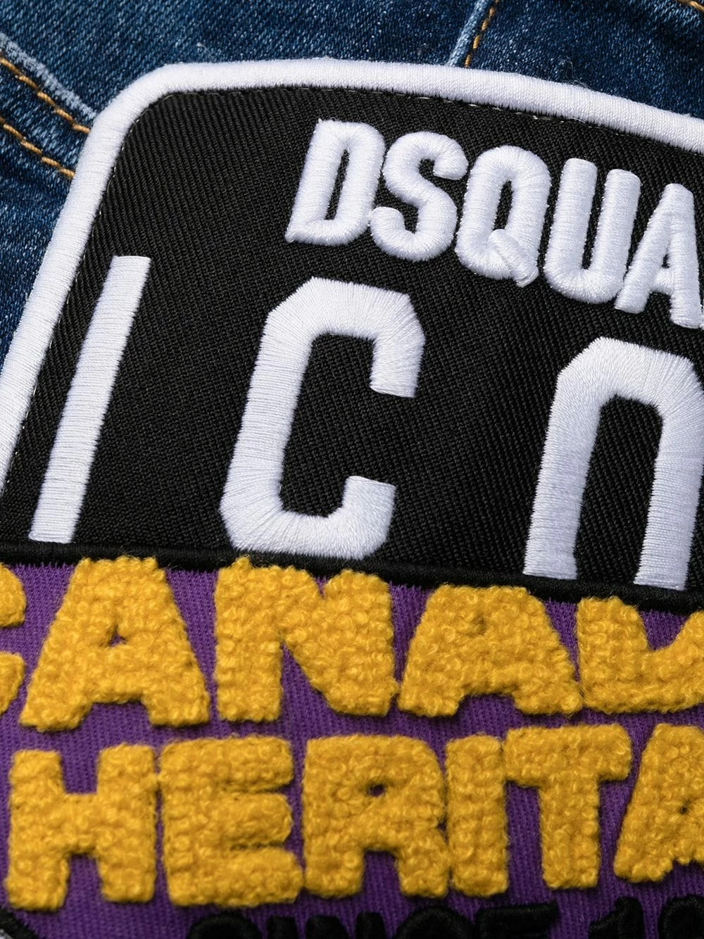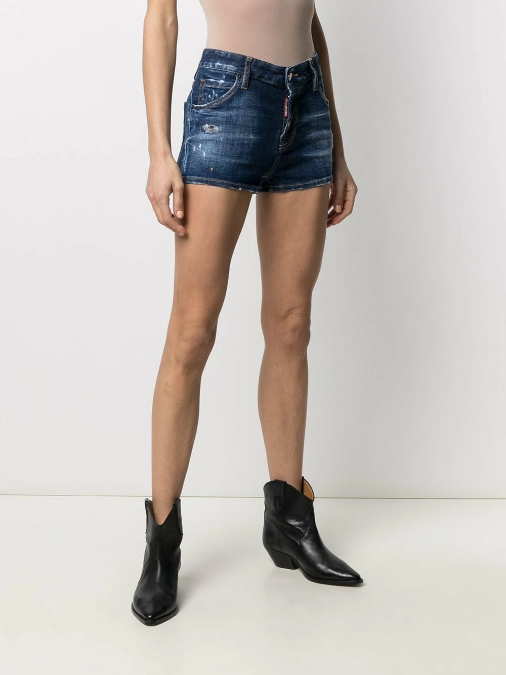 Effet délavé, patch logo sur le côté, taille mi-haute, passants de ceinture, boutonnière sur le devant, patch logo sur le devant, 5 poches classiques, effet usé. Couleur : bleu.
