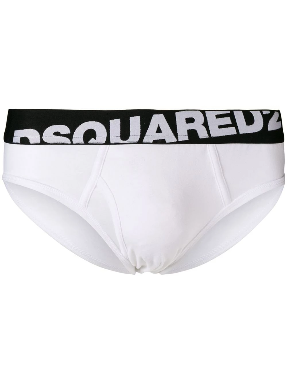 Slip en coton stretch blanc à bande logo Dsquared2 avec taille basse. Les sous-vêtements et la lingerie doivent être essayés par dessus vos propres vêtements.