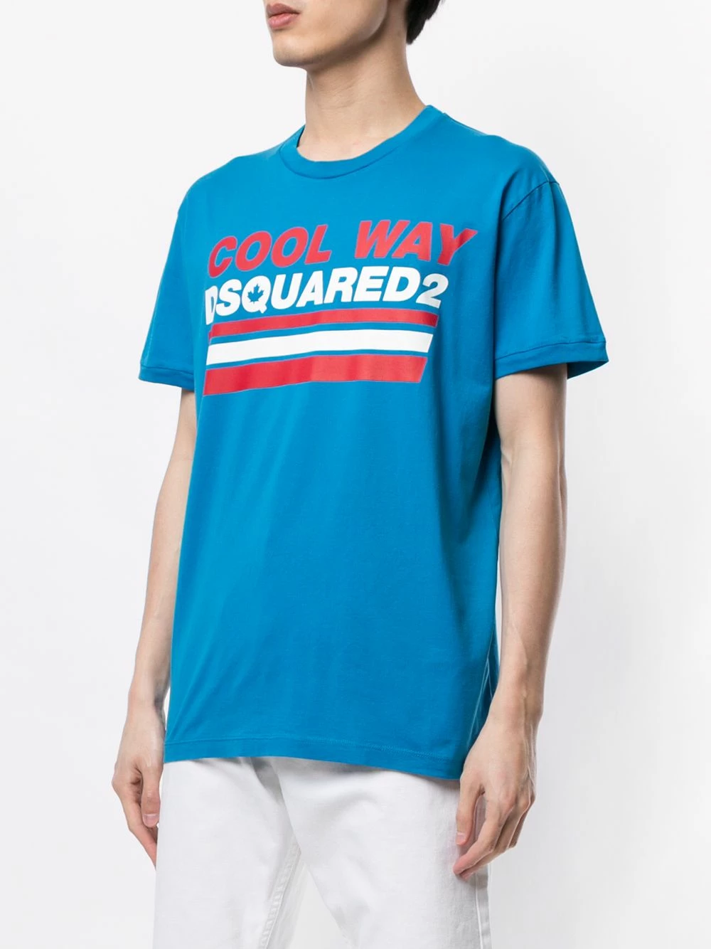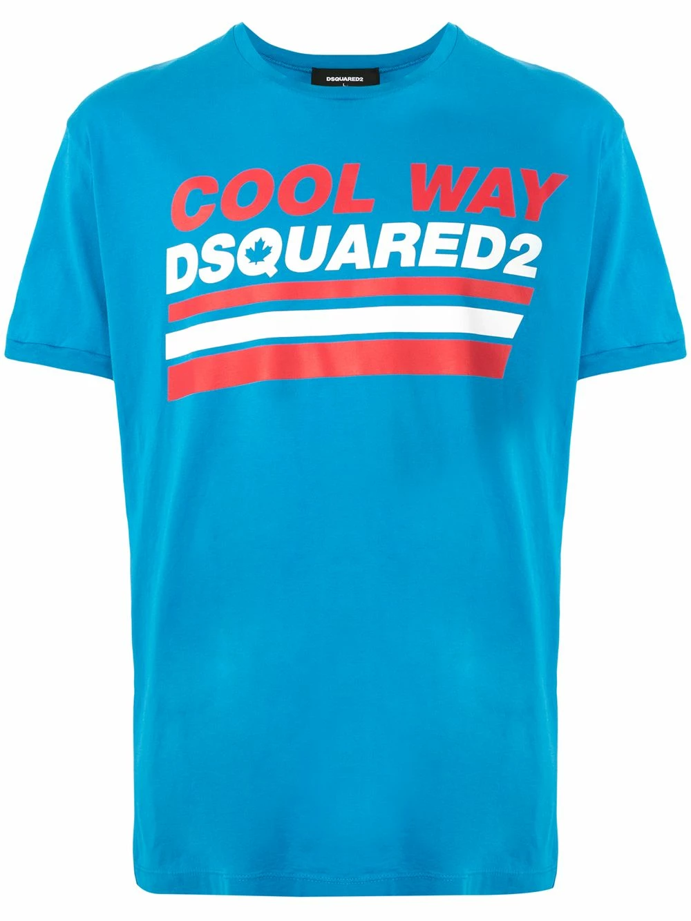 T-shirt à imprimé graphique en coton Dsquared2 avec encolure ronde, manches courtes et imprimé graphique. Couleur : bleu.