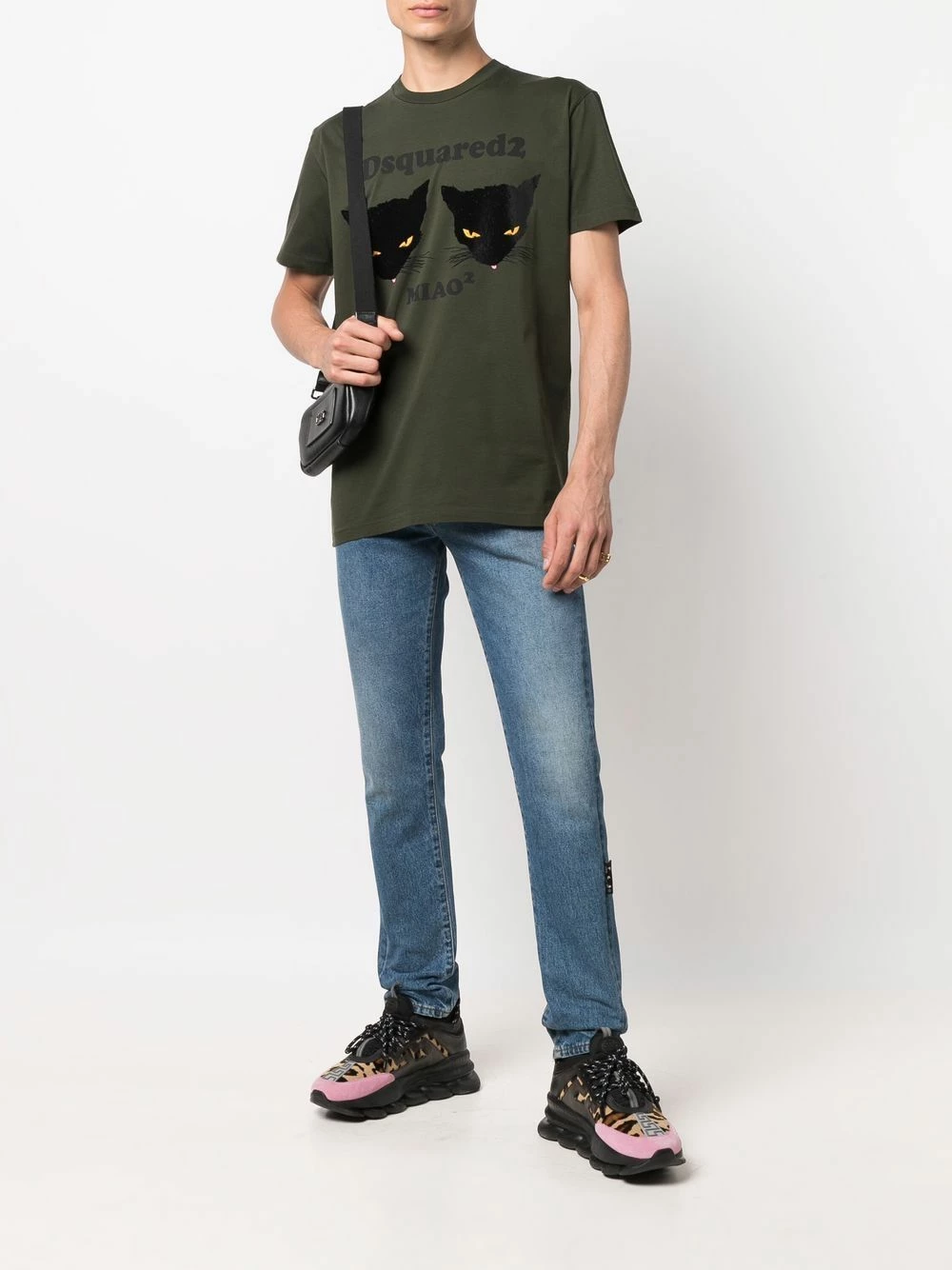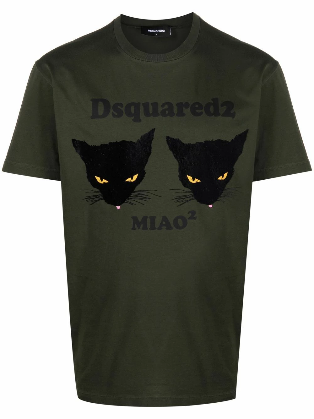 Vert, coton, imprimé animalier, slogan imprimé sur l’avant, logo imprimé sur le devant, encolure ronde, manches courtes, ourlet droit.