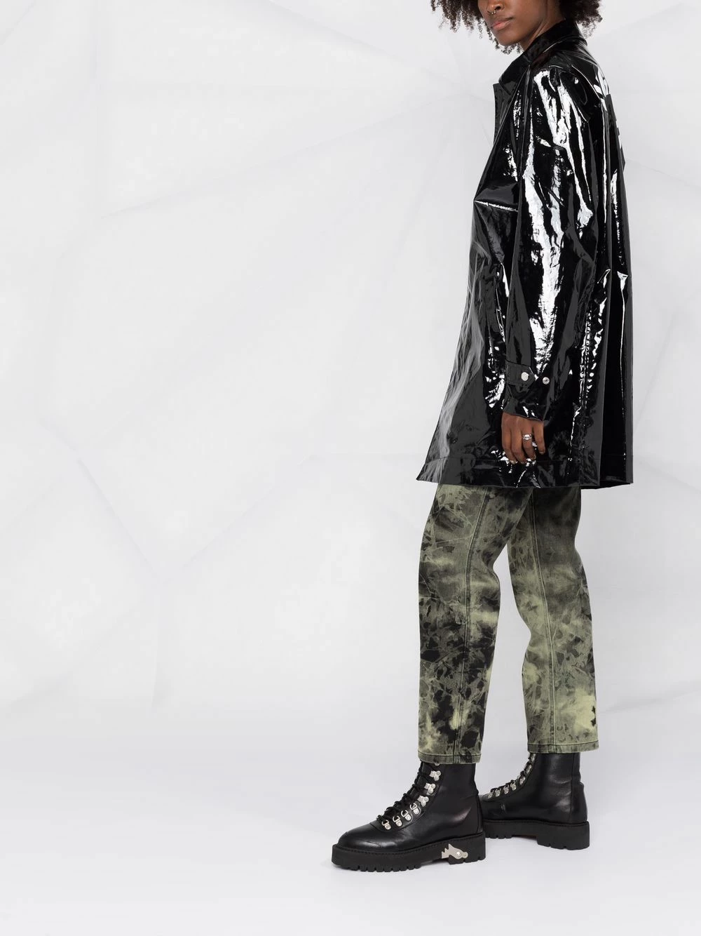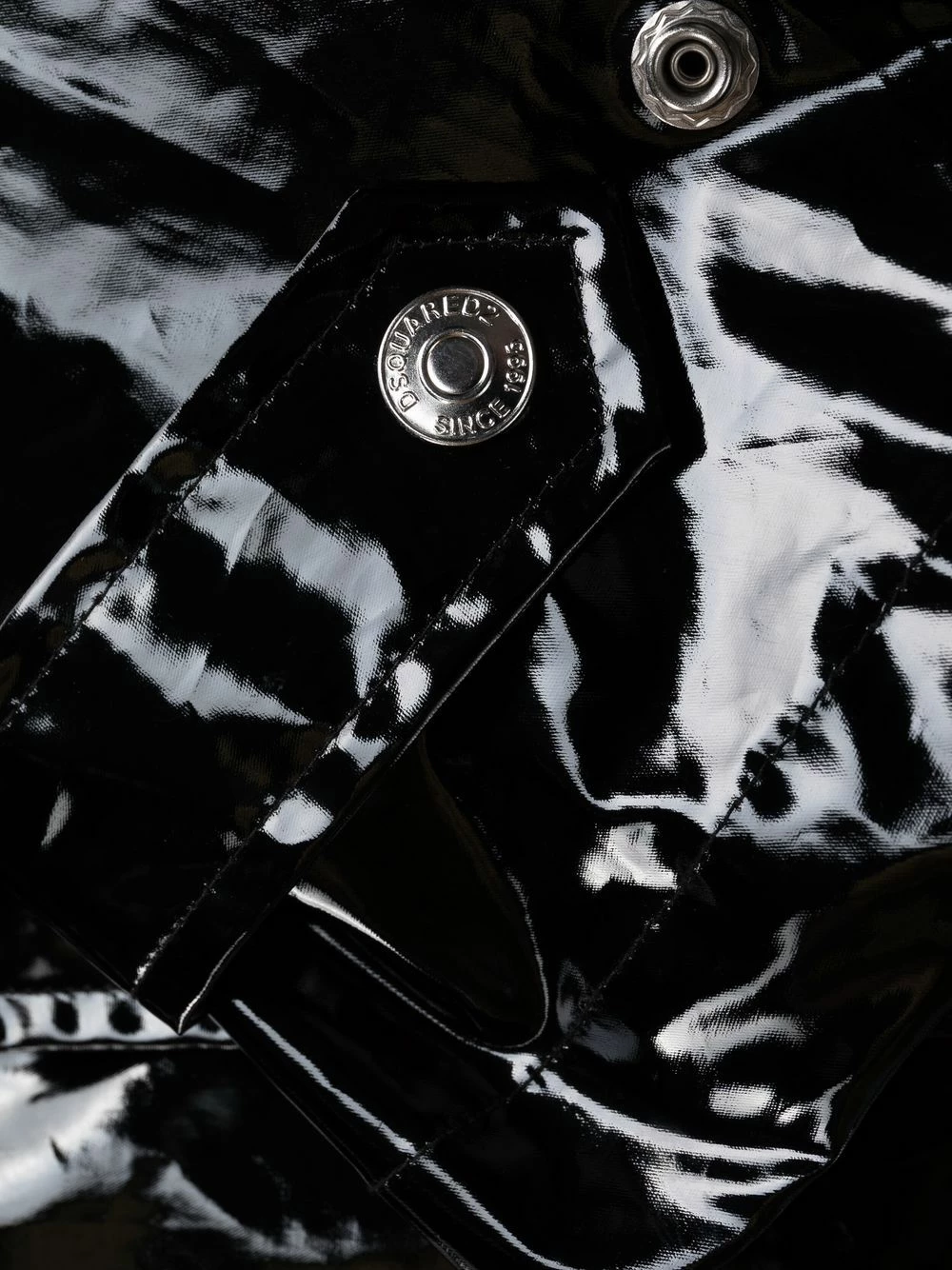 Fini brillant, effet froissé, logo imprimé à la poitrine, slogan imprimé à larrière, col classique, fermeture zippée devant, poches latérales fendues, manches longues, poignets boutonnés. Couleur : noir. Matière : coton.