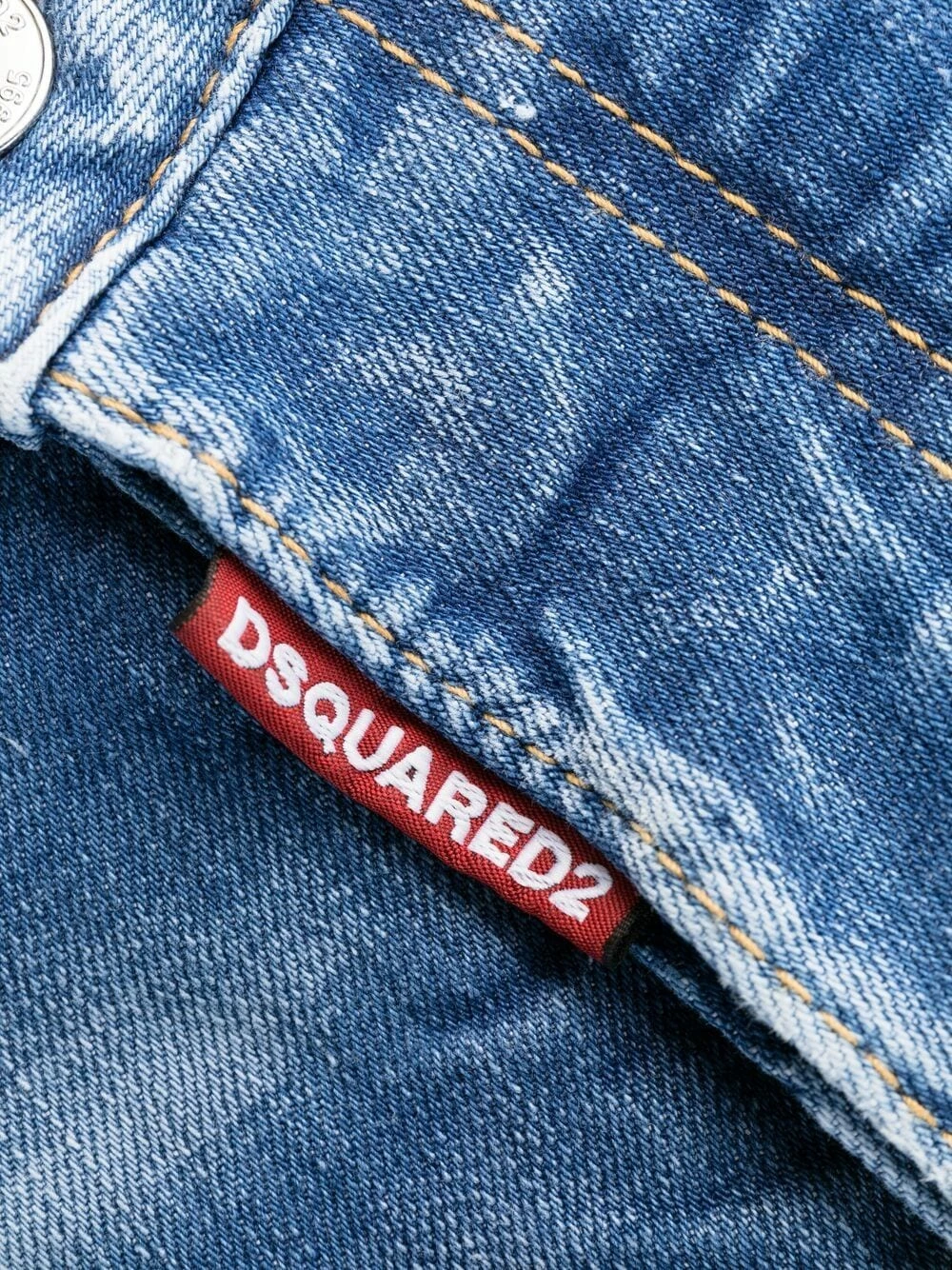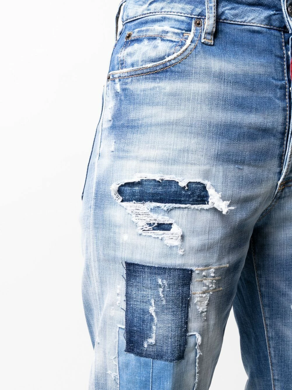 Effet usé, taille haute, boutonnière sur le devant, passants de ceinture, 5 poches classiques, coupe boyfriend, longueur crop. Couleur : bleu.