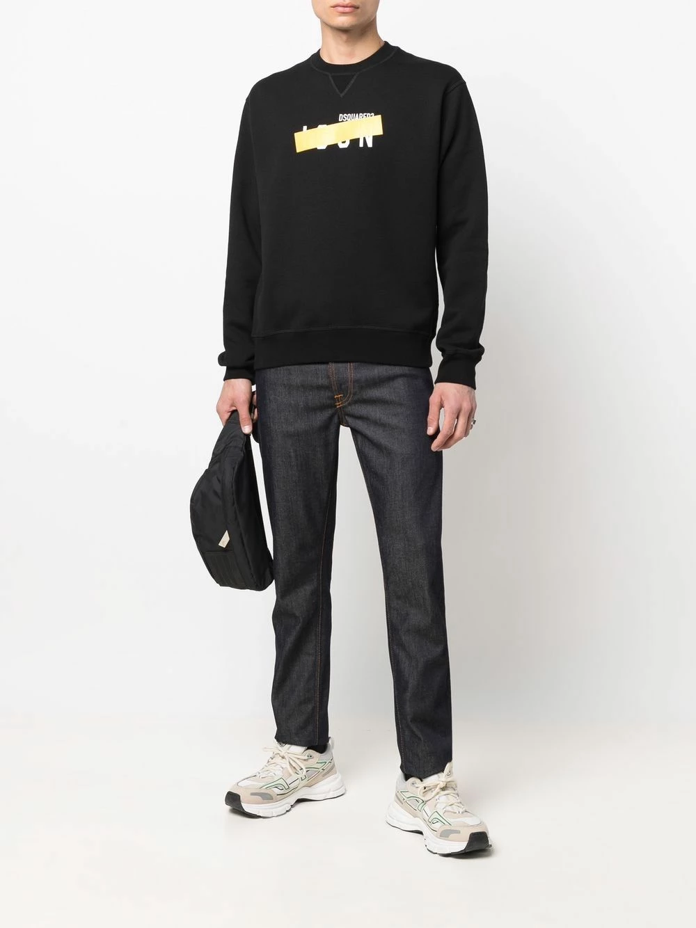 Logo imprimé sur le devant, motif de rayures vives, encolure ras du cou, manches longues, poignets élastiqués, ourlet élastiqué. Matière : coton.