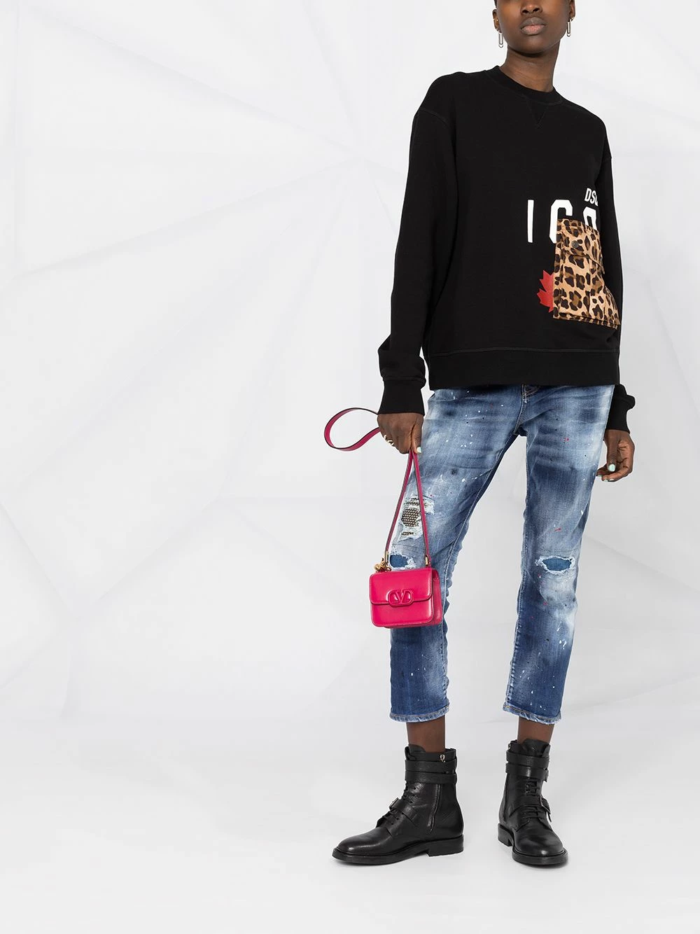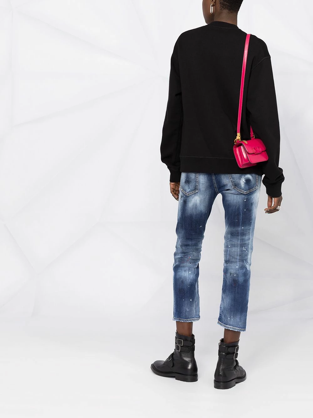 Encolure ronde, manches longues, poignets nervurés, design patchwork. Couleur : Noir. Matière : coton.