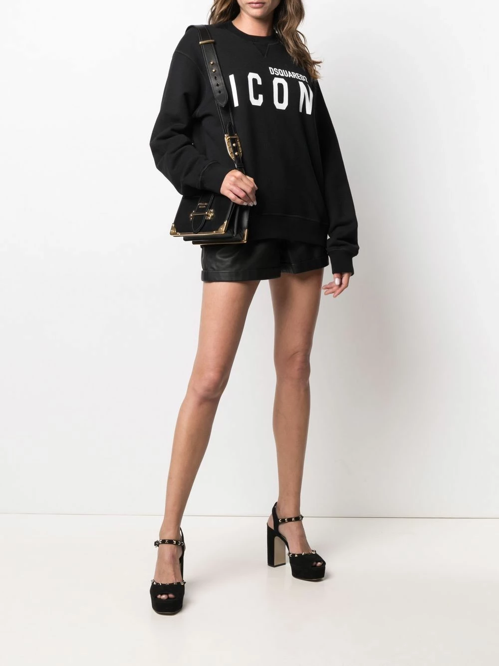 Logo imprimé sur le devant, poignets élastiqués, ourlet élastiqué, encolure ronde, manches longues, ourlet droit. Couleur : noir. Matière : coton.