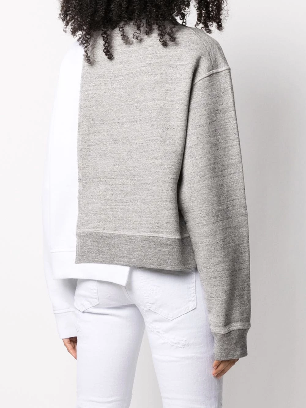 Empiècements contrastants, logo imprimé sur le devant, encolure ronde, manches longues, ourlet droit. Couleur : gris. Matière : coton.