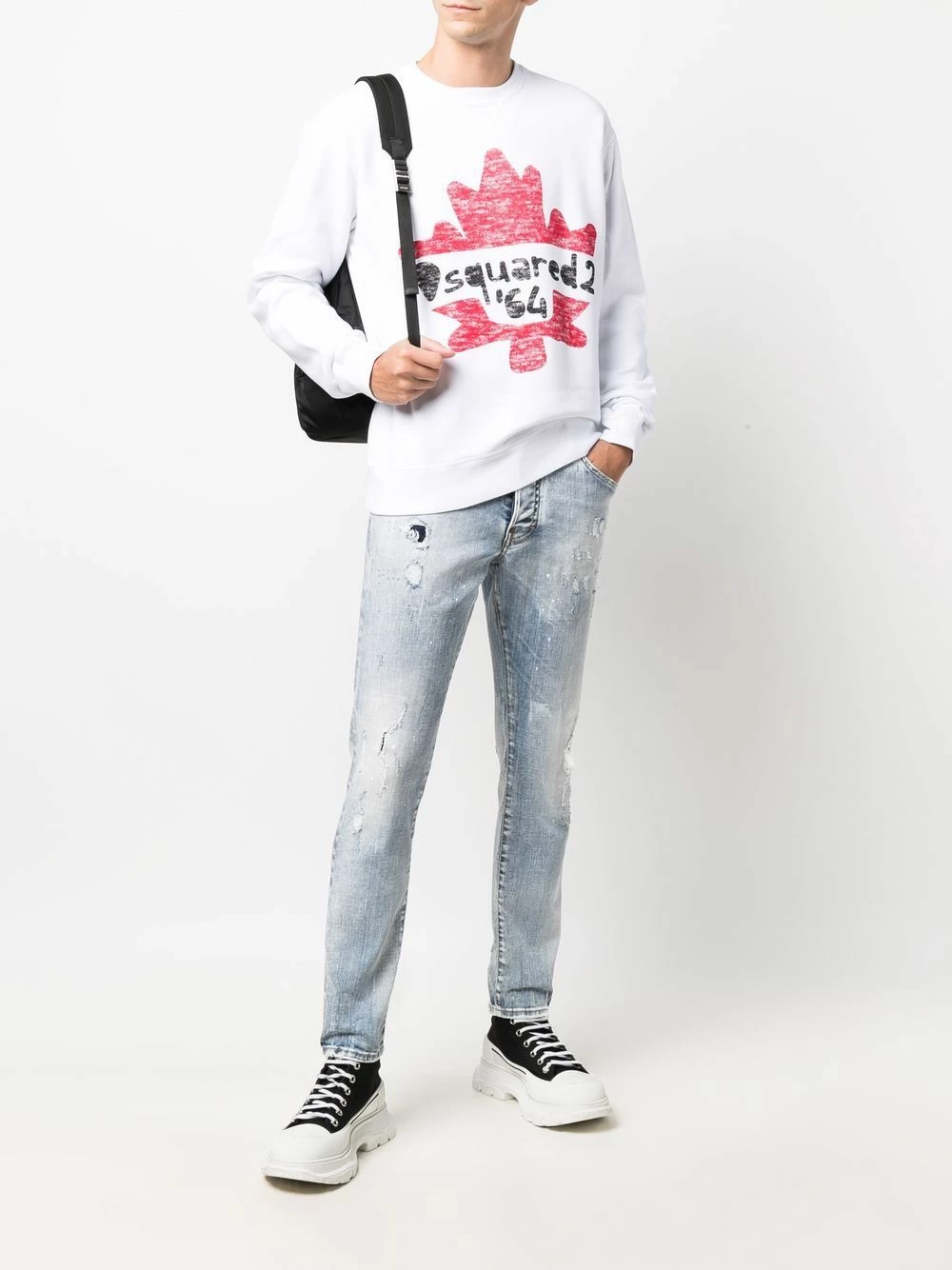 Imprimé feuillage, logo imprimé sur le devant, encolure ras du cou, manches longues, ourlet élastiqué. Couleur : blanc. Matière : coton.