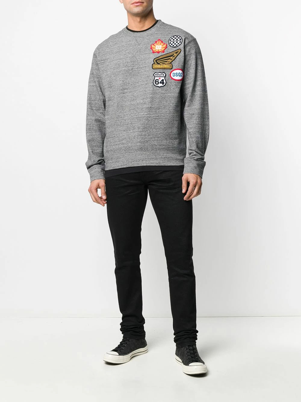 Sweat en coton à patch Route 64 Dsquared2 avec encolure ronde, patch logo brodé sur la poitrine, manches longues, ourlet et poignets nervurés et coupe droite. Couleur: gris.