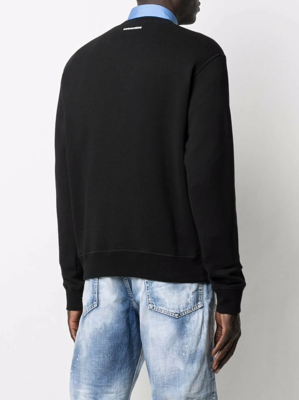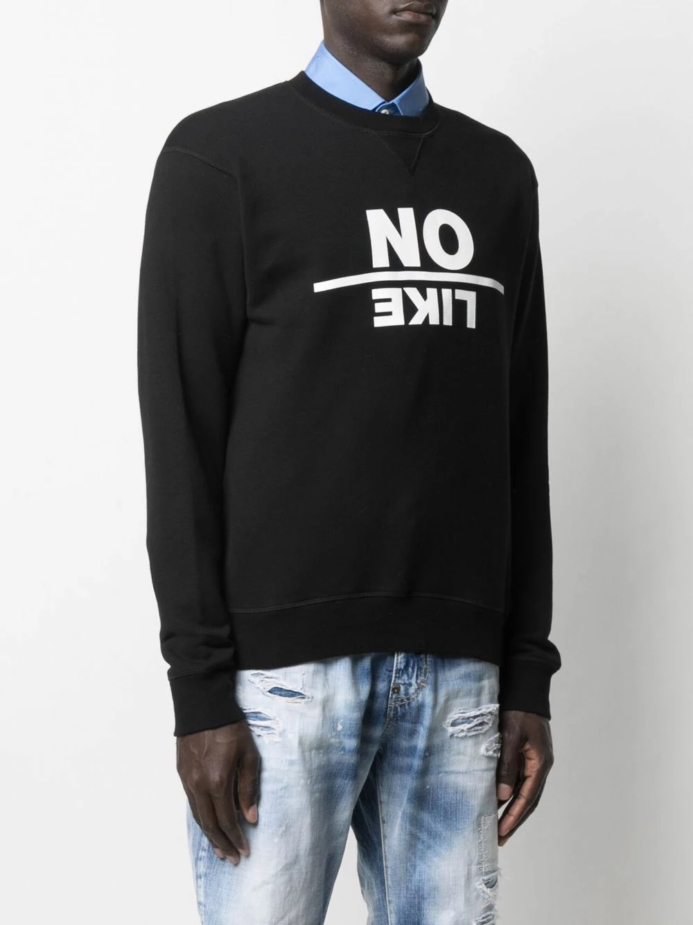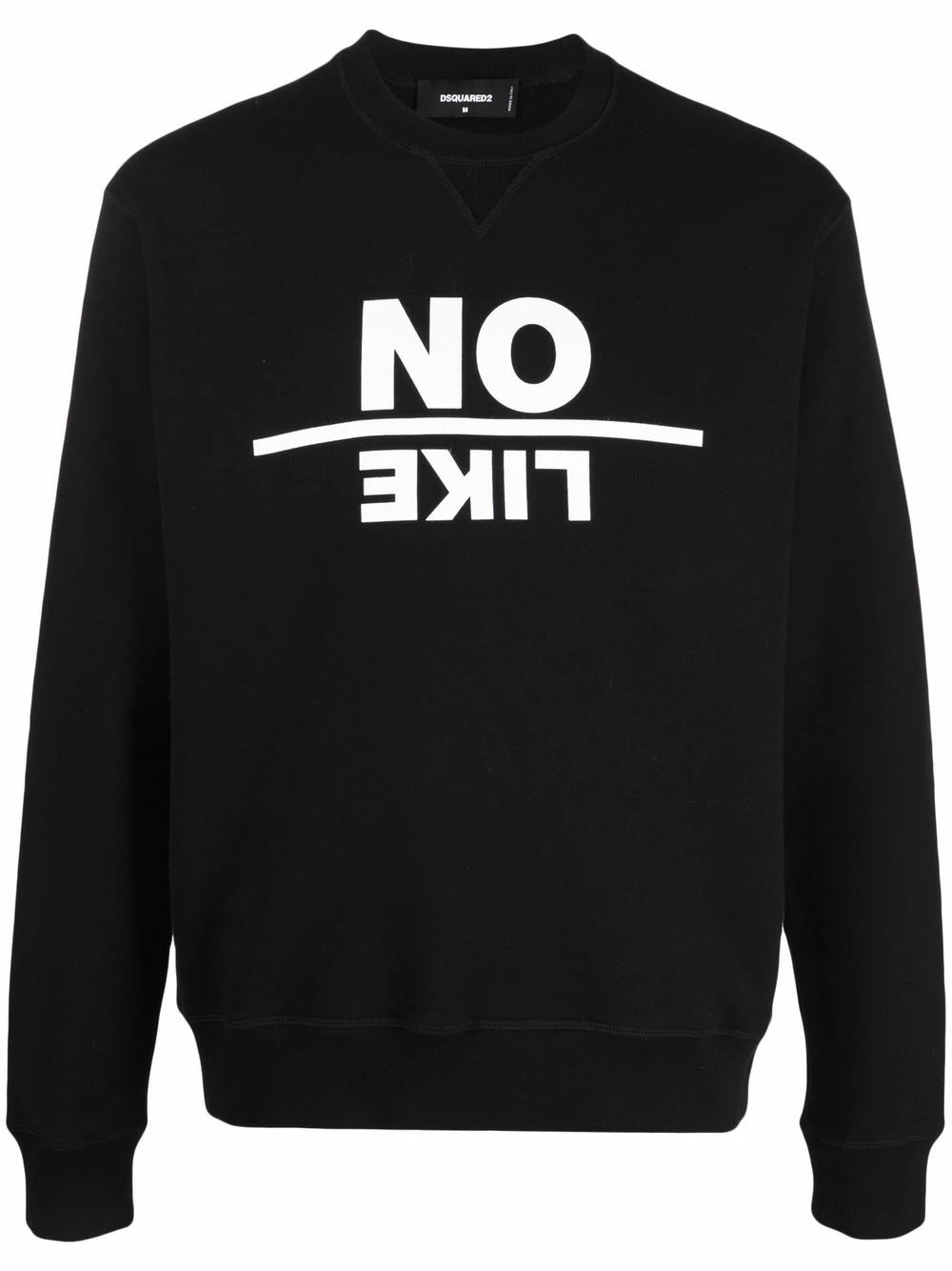 Tricot point jersey, slogan imprimé sur l’avant, encolure ras du cou, ourlet élastiqué. Couleur : noir. Matière : coton.