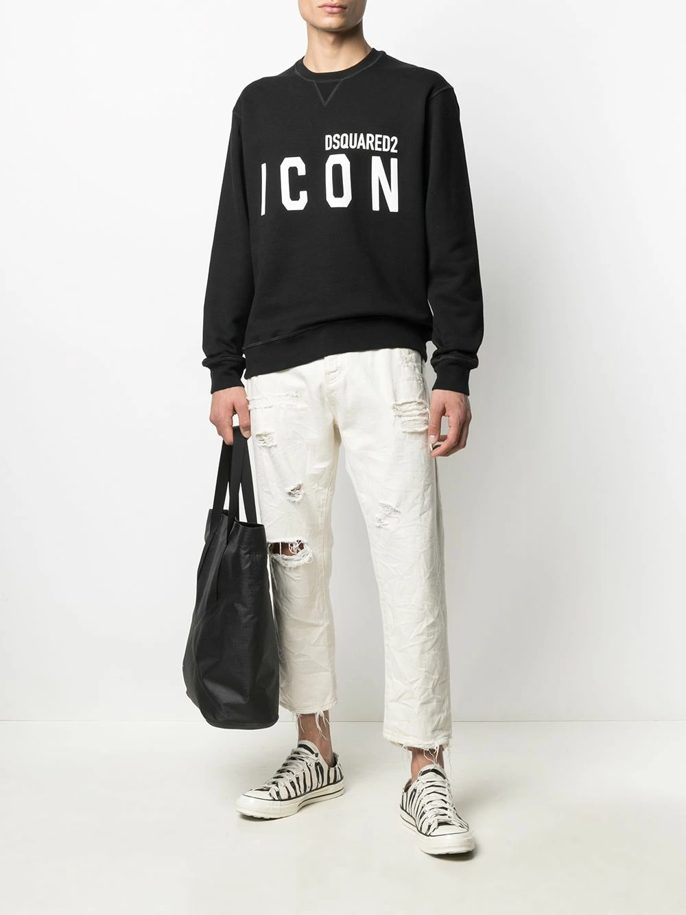 Encolure ras du cou, logo imprimé à la poitrine, manches longues, ourlet nervuré, poignets nervurés. Couleur : noir. Matière : coton.