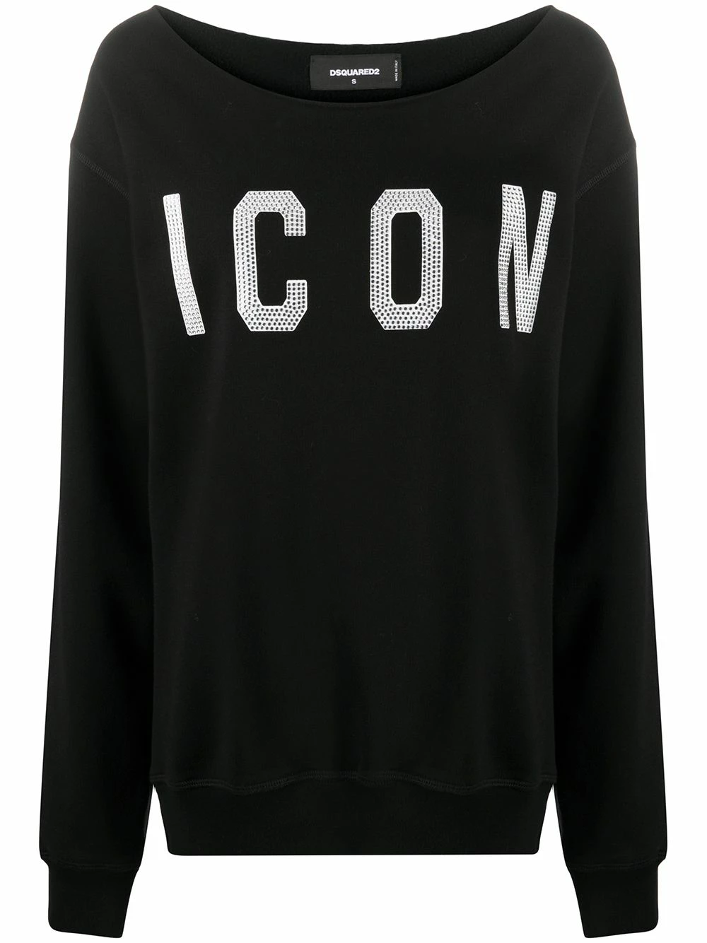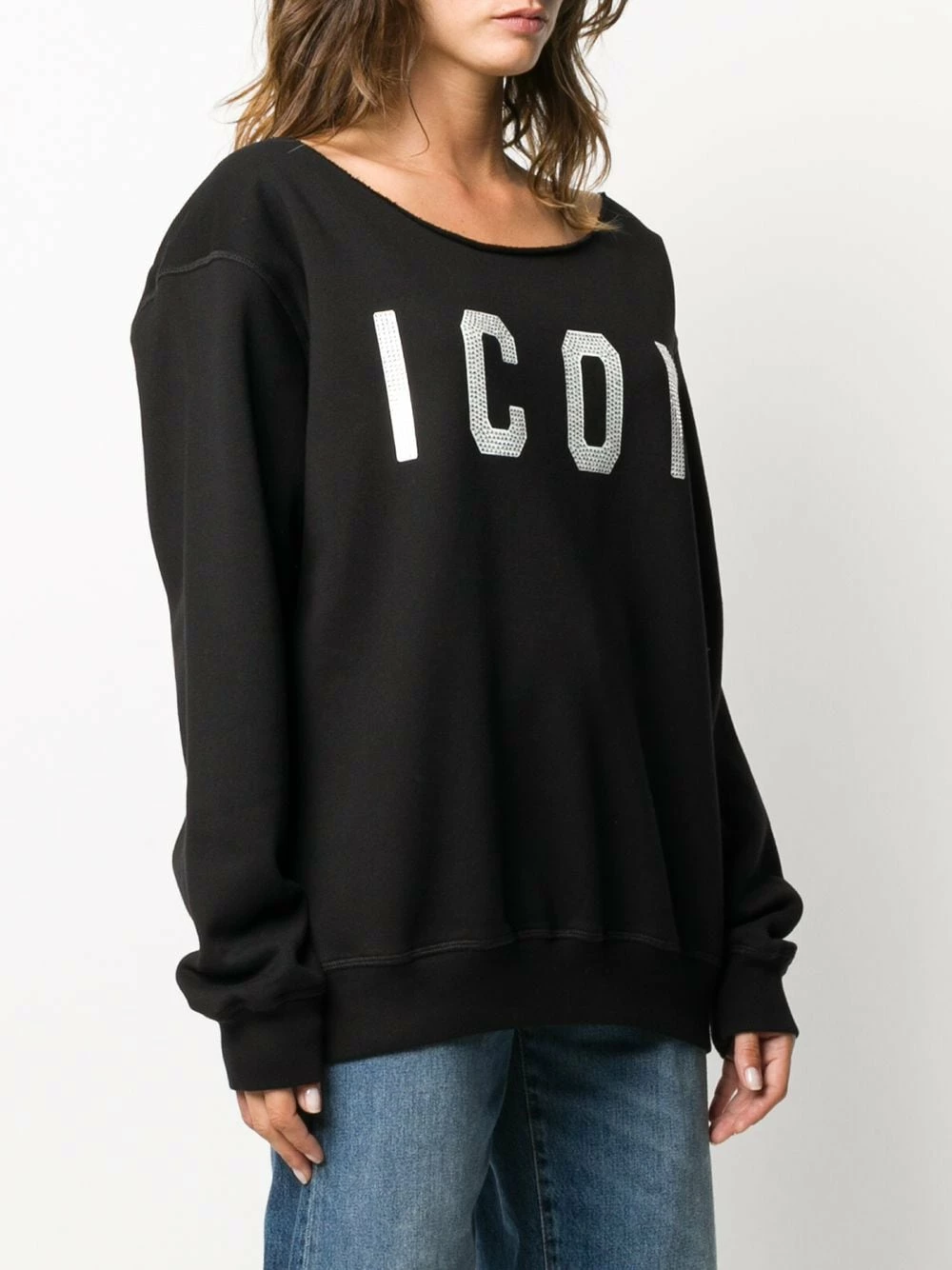 Sweat ICON en coton Dsquared2 avec encolure ronde, manches longues et silhouette ample. Couleur : noir.