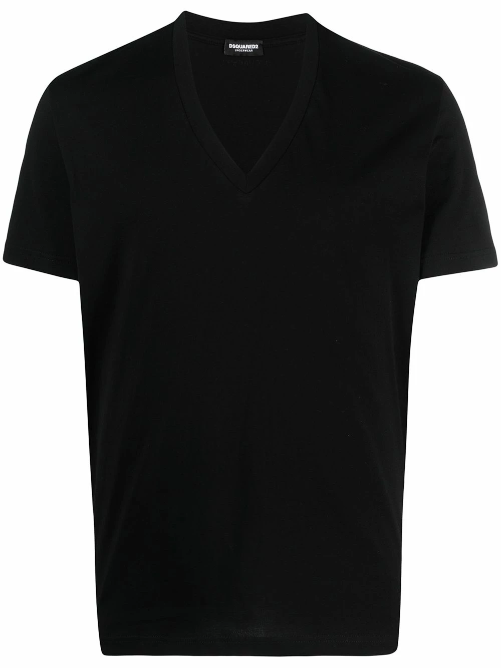 Logo imprimé à l’arrière, col v, manches courtes, ourlet droit. Couleur : noir. Matière : coton.