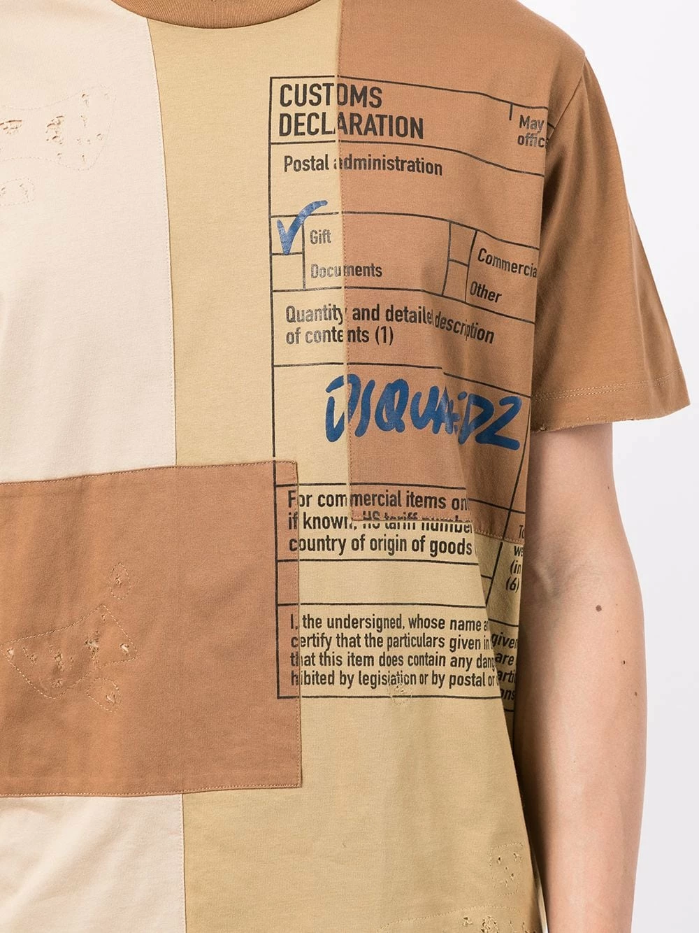 Encolure ras du cou, manches courtes, ourlet droit, design à empiècements. Couleur : marron. Matière : coton.