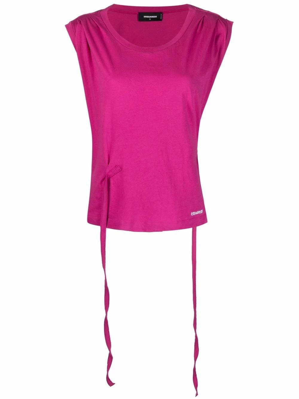 Ourlet à logo imprimé, encolure ras du cou, mancherons, ourlet droit, fermeture à nouer. Matière : coton.