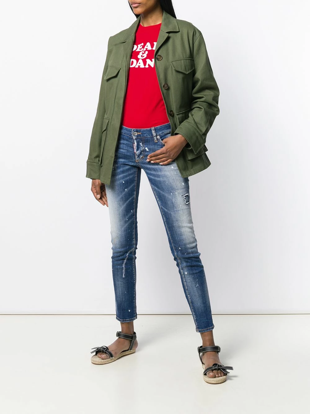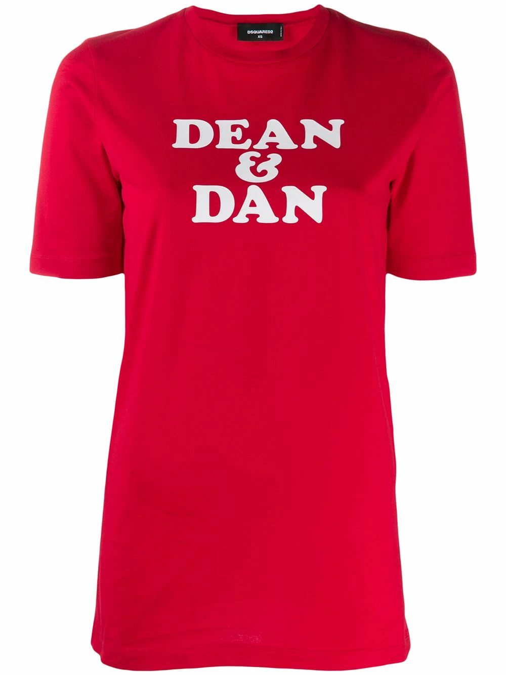 T-shirt à détail de slogan en coton Dsquared2 avec encolure ronde à bordure, imprimé devant, forme détendue, ourlet droit, manches courtes et imprimé au dos. Couleur : rouge.