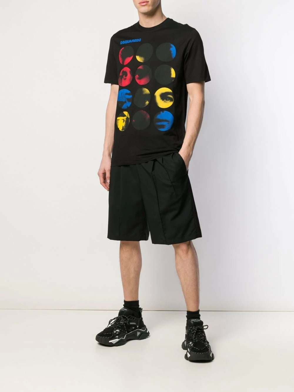 T-shirt à imprimé graphique en coton Dsquared2 avec encolure ronde nervurée et manches courtes. Couleur : noir.