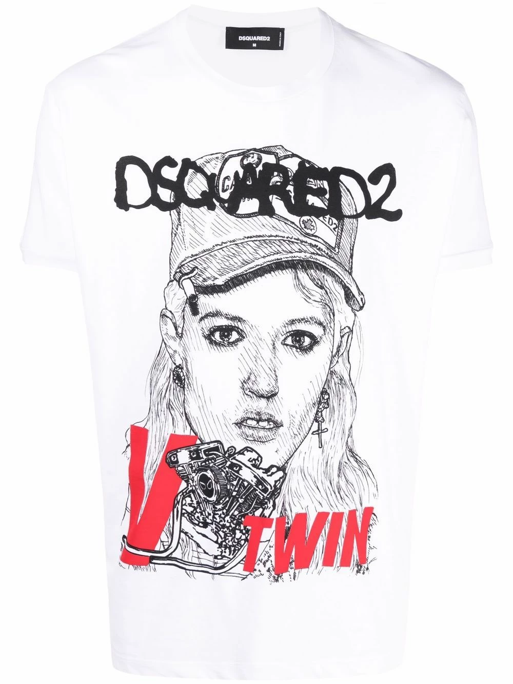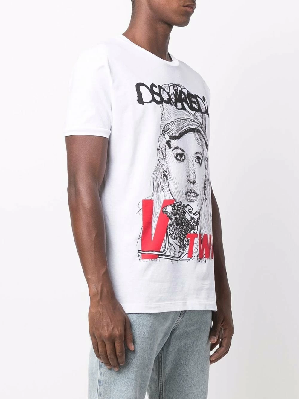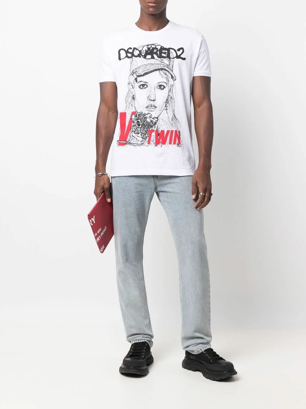 Logo imprimé à la poitrine, imprimé graphique sur le buste, encolure ras du cou, coutures ton sur ton, manches courtes, ourlet droit. Matière : coton.
