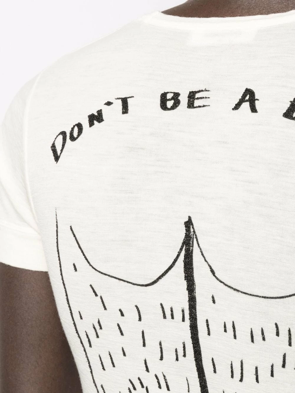 Imprimé graphique, encolure ras du cou, manches courtes, ourlet droit. Matière : laine vierge.