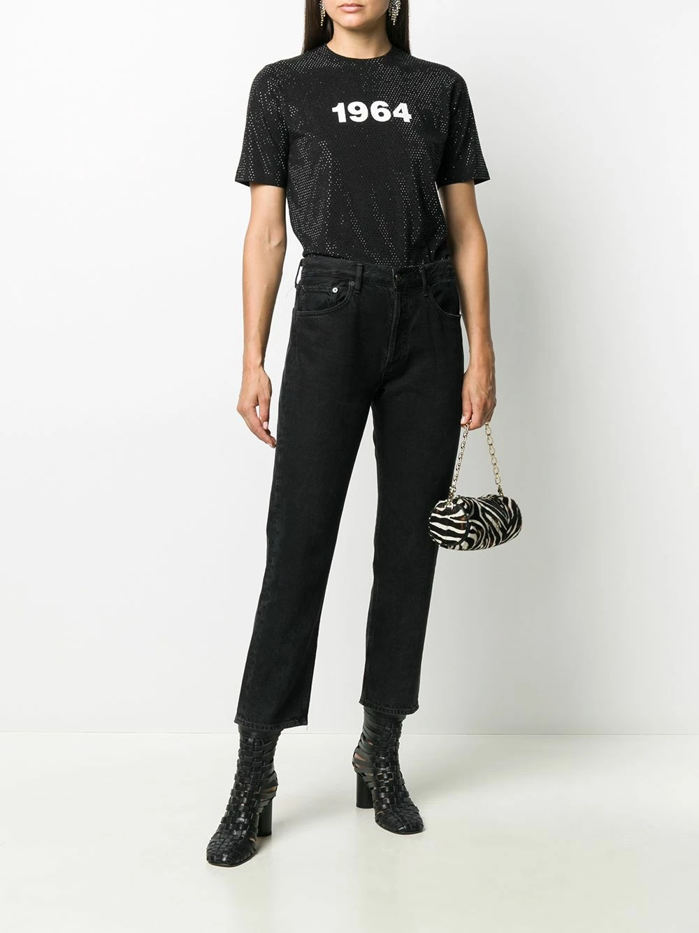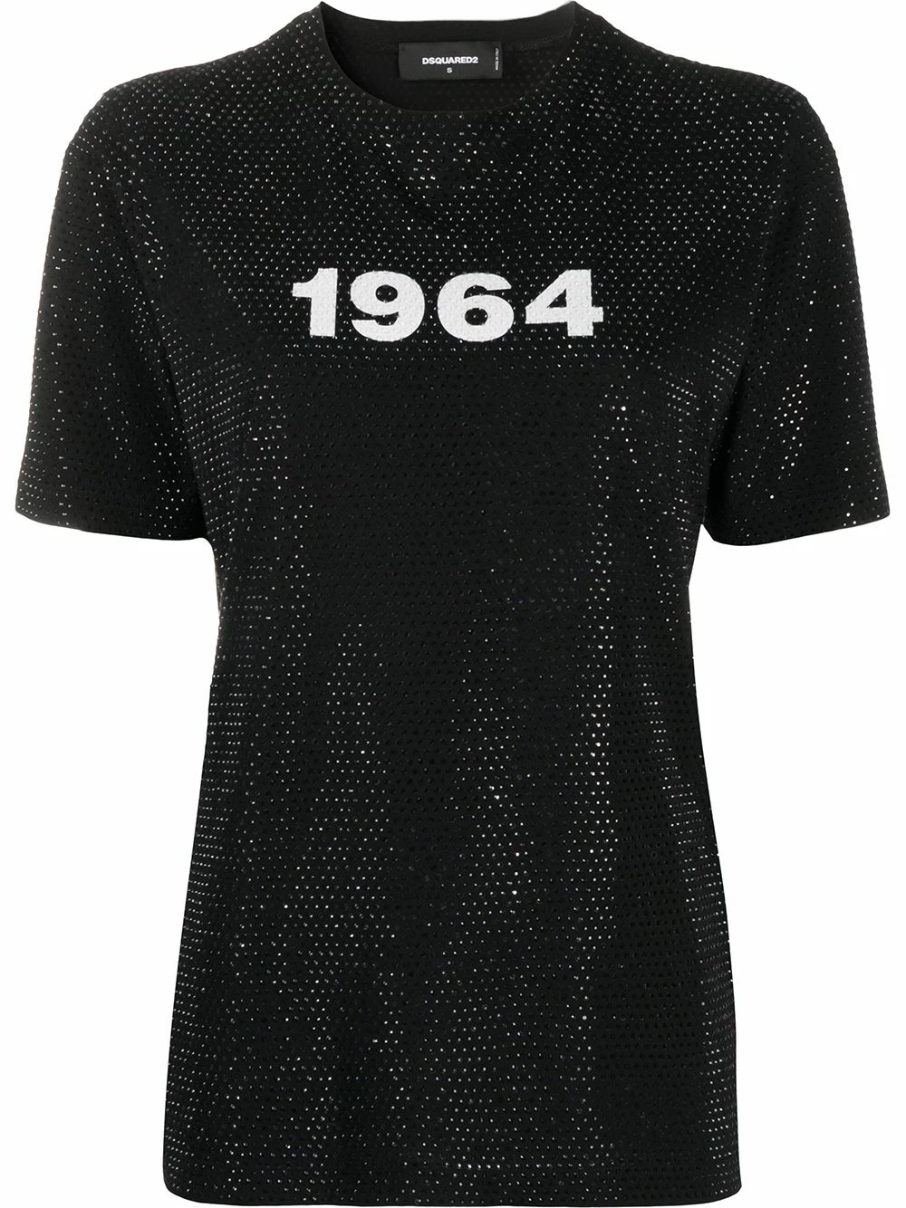 Ornement en cristal, logo imprimé à la poitrine, encolure ronde, manches courtes, ourlet droit. Couleur : noir. Matière : coton.