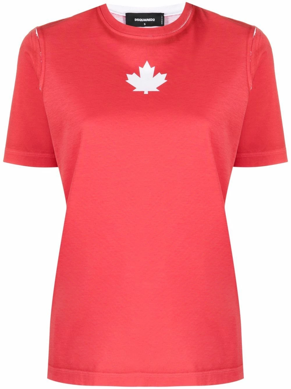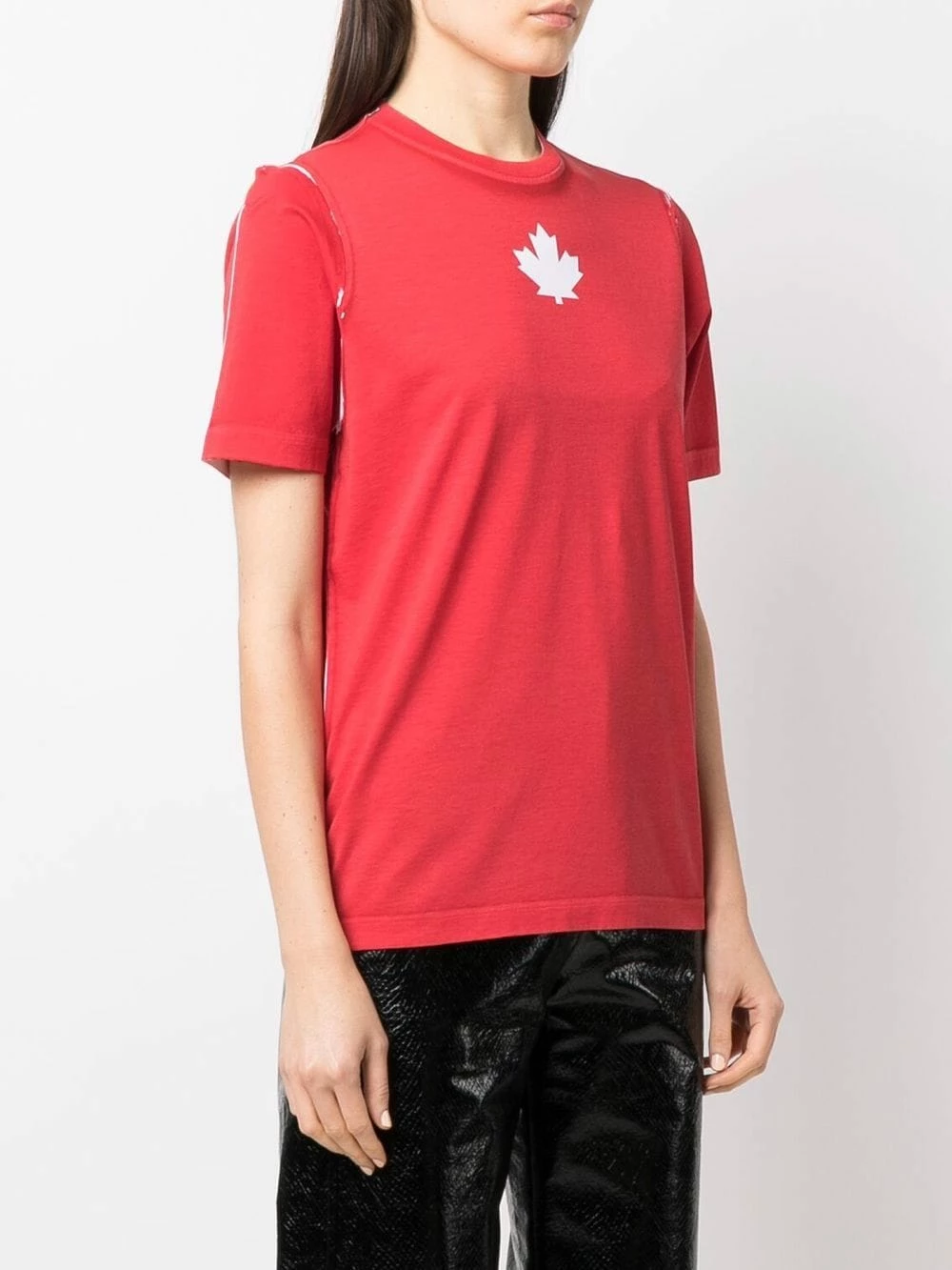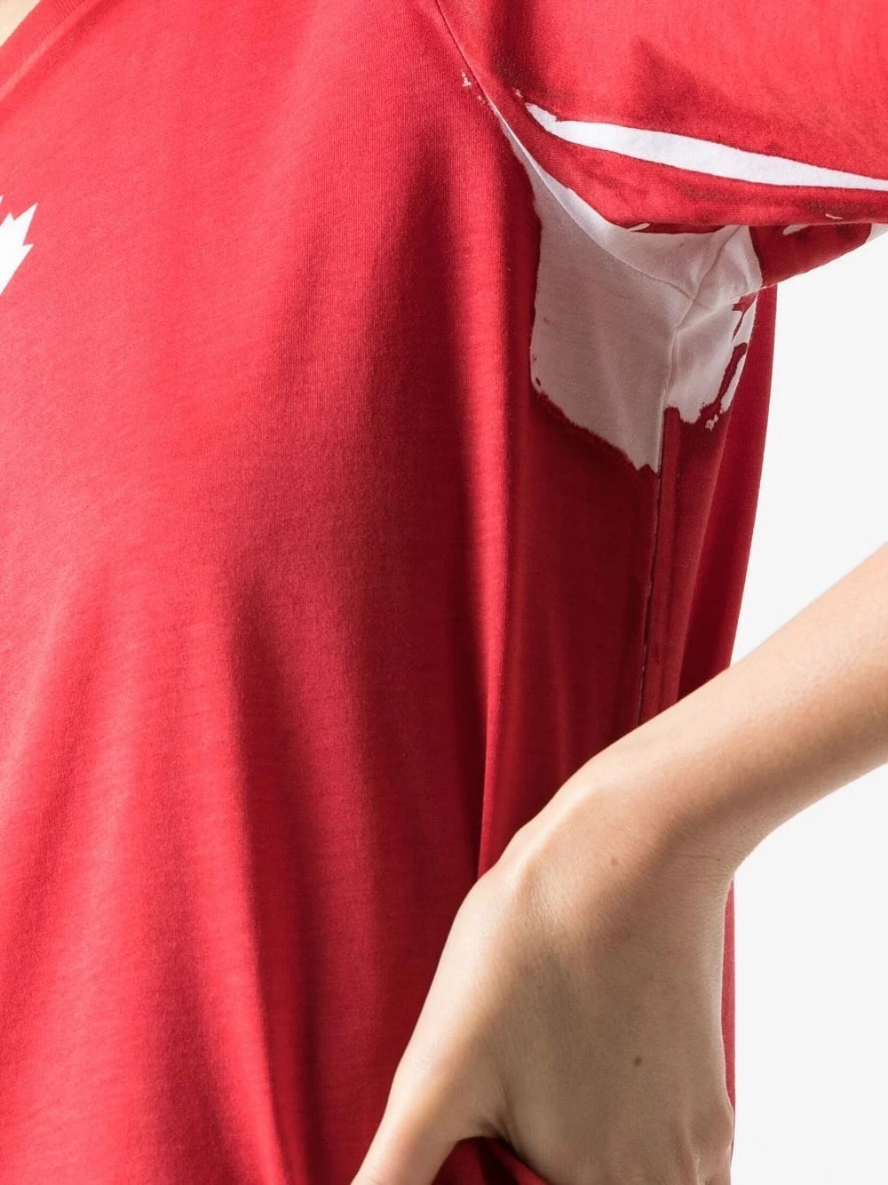 Encolure ras du cou, imprimé feuille d’érable, imprimé graphique à l’arrière, manches raglan courtes, ourlet droit. Couleur : rouge. Matière : coton.