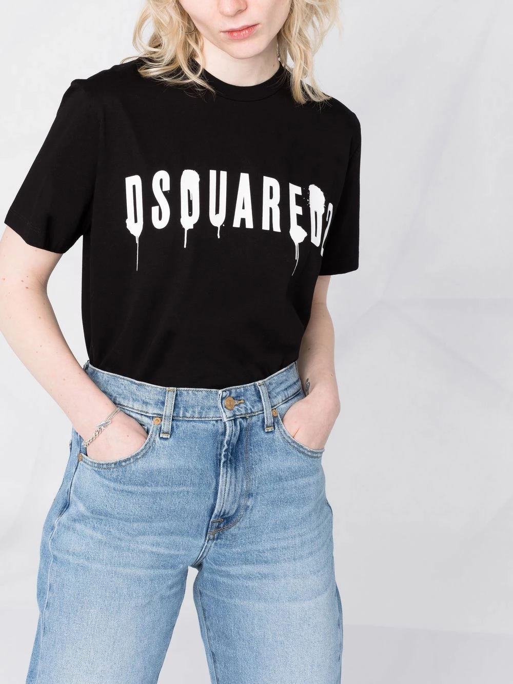 Logo imprimé à la poitrine, poignets nervurés, ourlet droit, manches courtes. Matière : coton.