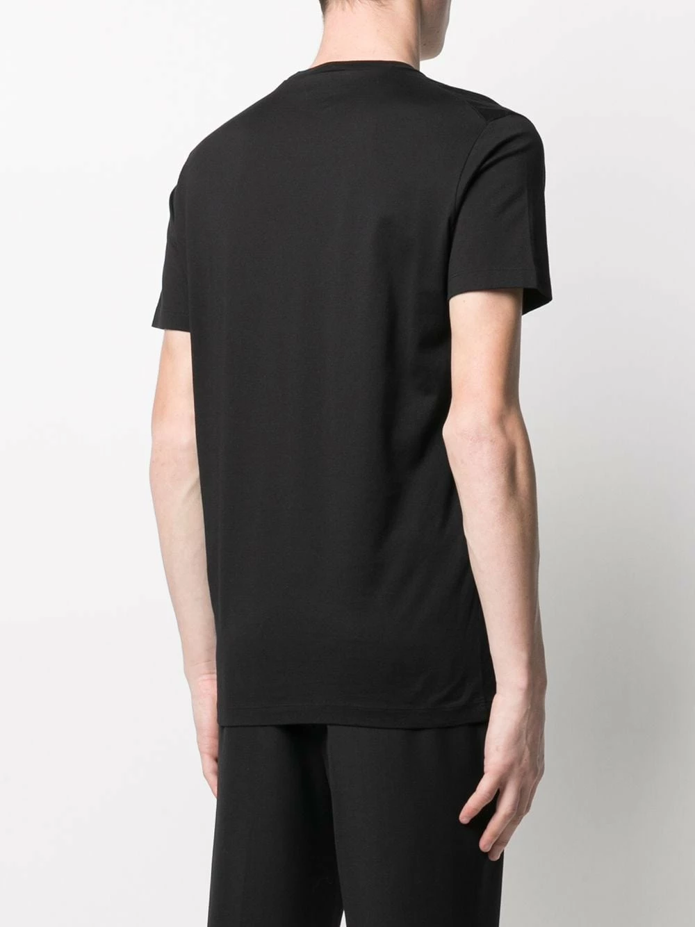 Logo imprimé à la poitrine, encolure ronde, manches courtes. Couleur : Noir. Matière : coton.