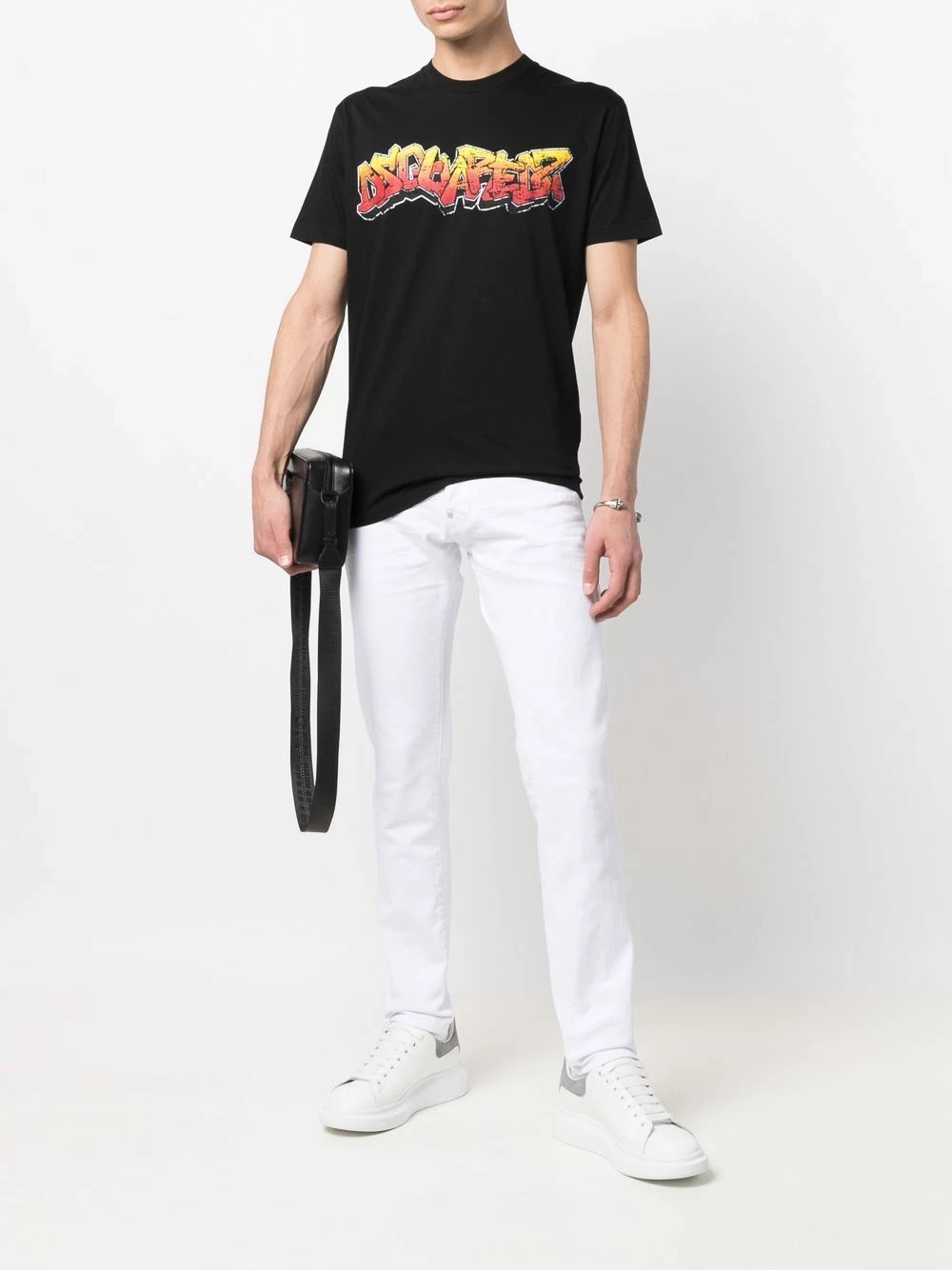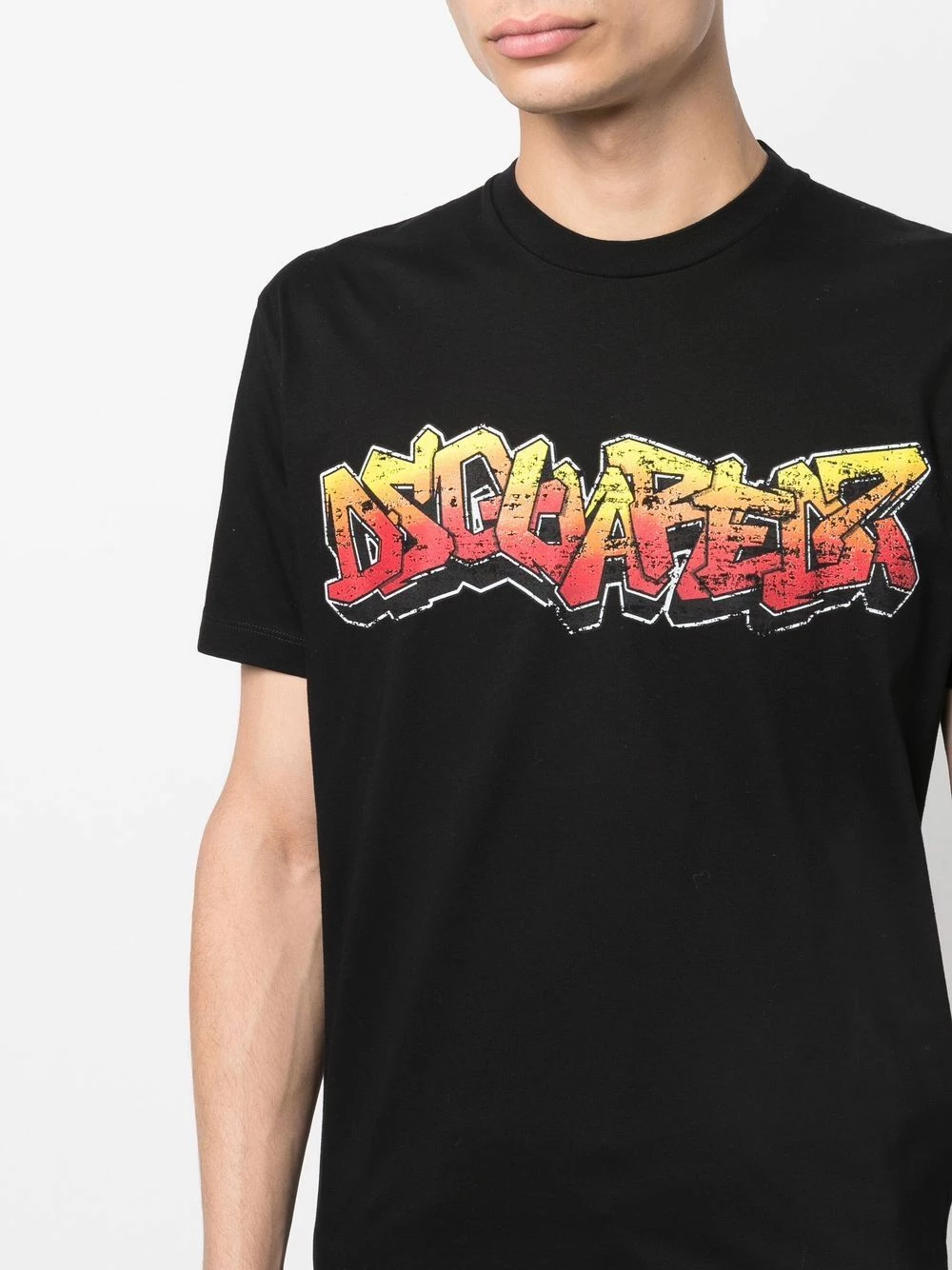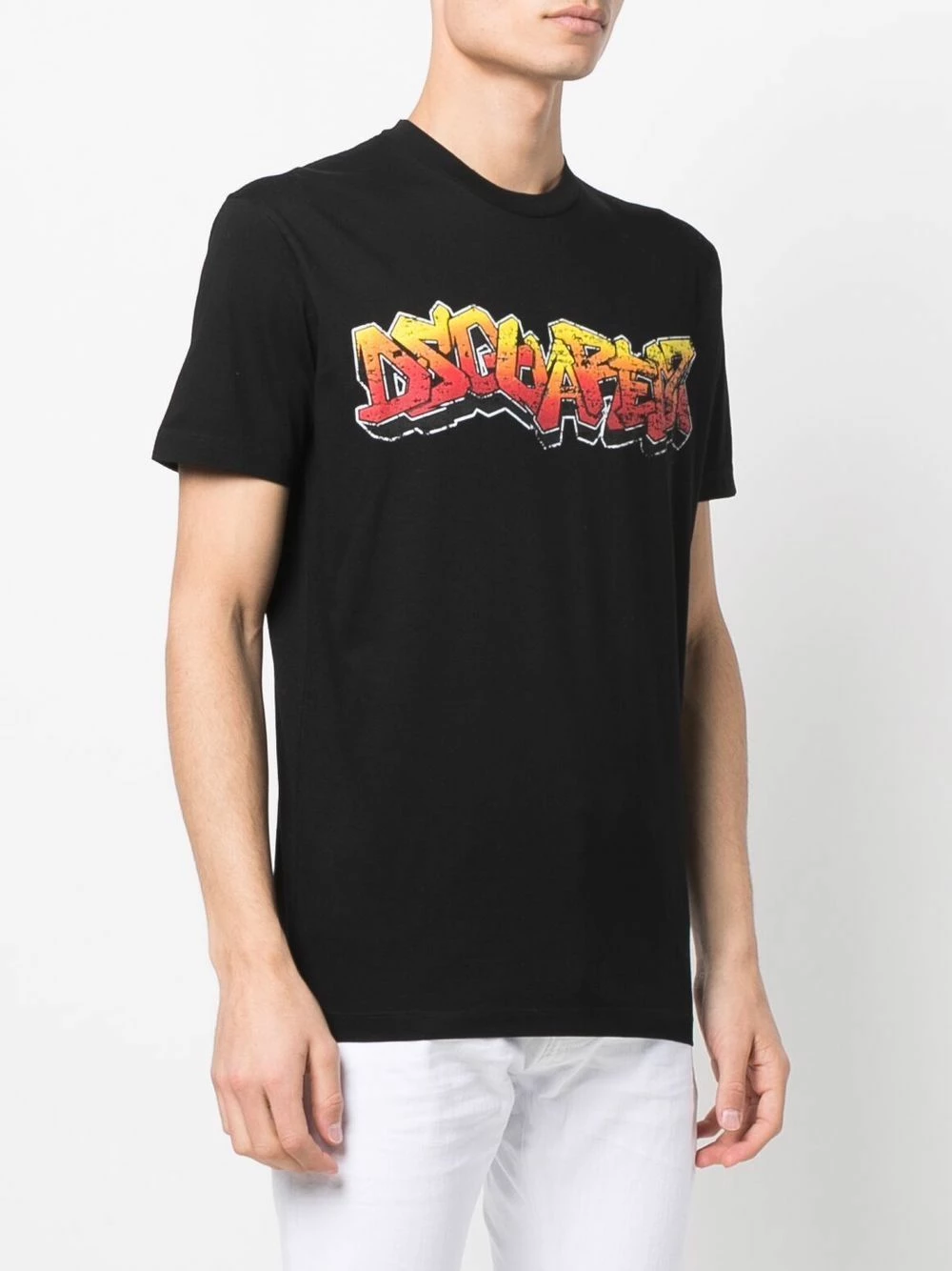 Logo imprimé sur le devant, encolure ronde, manches courtes, ourlet droit. Couleur : noir. Matière : coton.