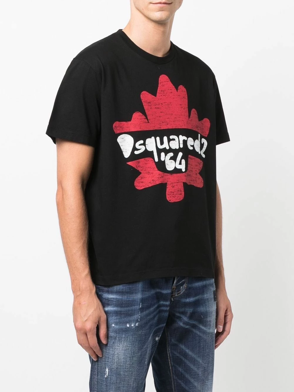 Imprimé feuille d’érable, logo imprimé sur le devant, encolure ronde, manches courtes, ourlet droit. Couleur : noir. Matière : coton.