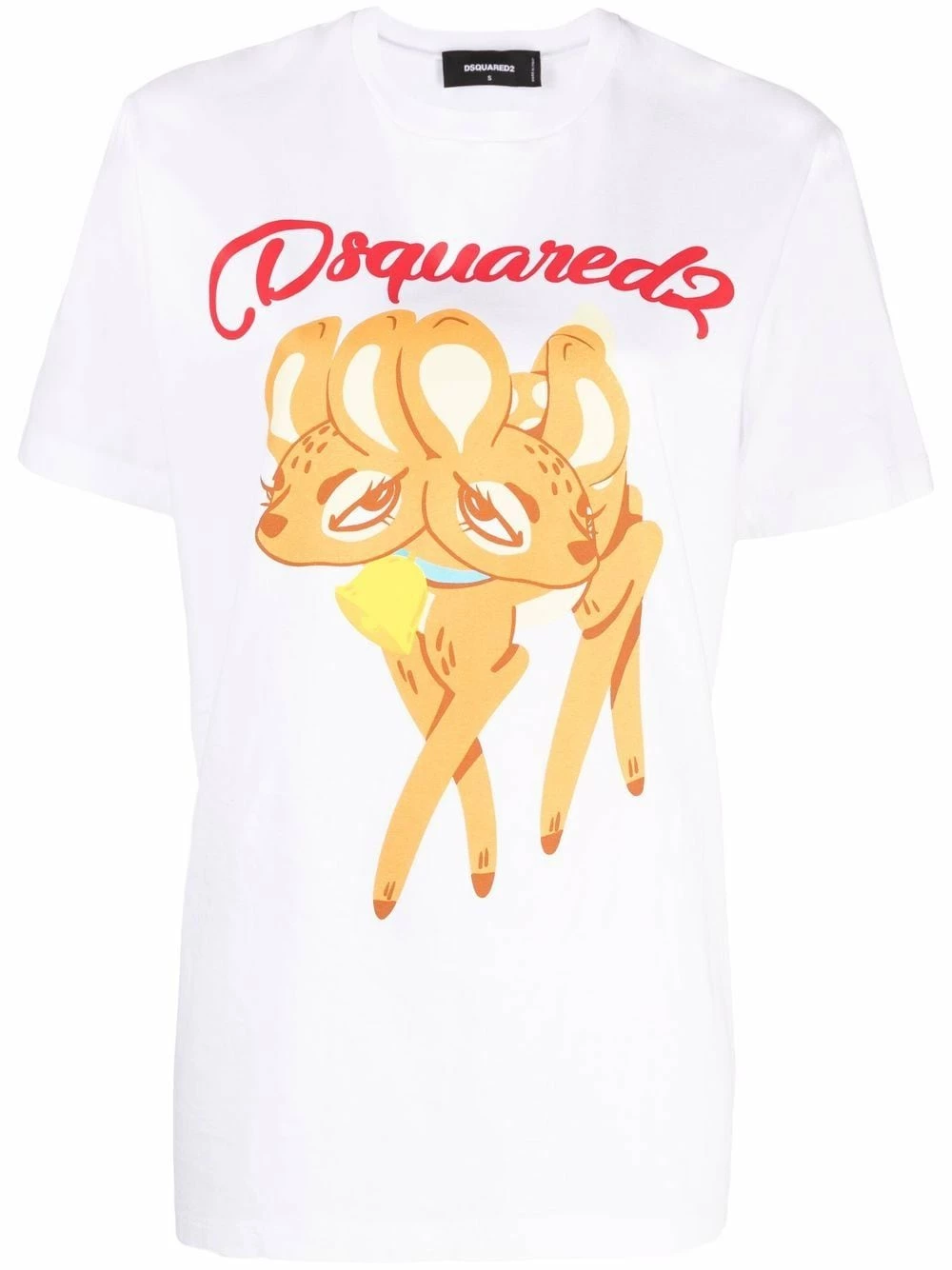Blanc, coton, logo imprimé sur le devant, encolure ronde, manches courtes.