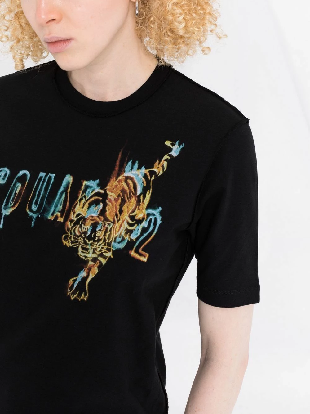 Encolure ronde, manches courtes, logo imprimé à la poitrine, ourlet droit. Matière : coton.