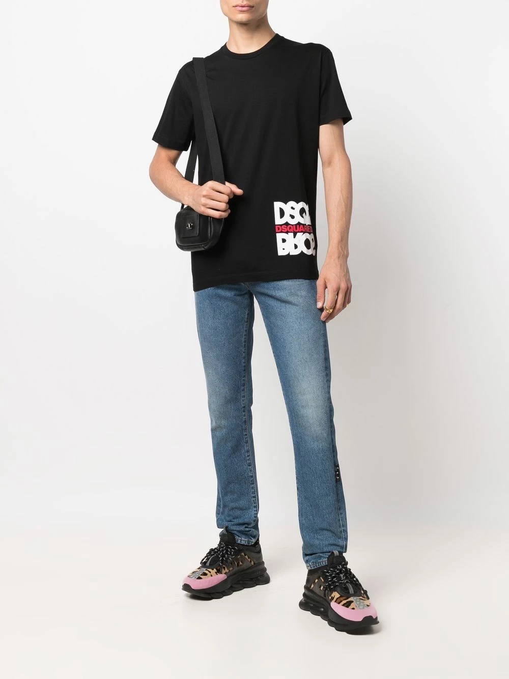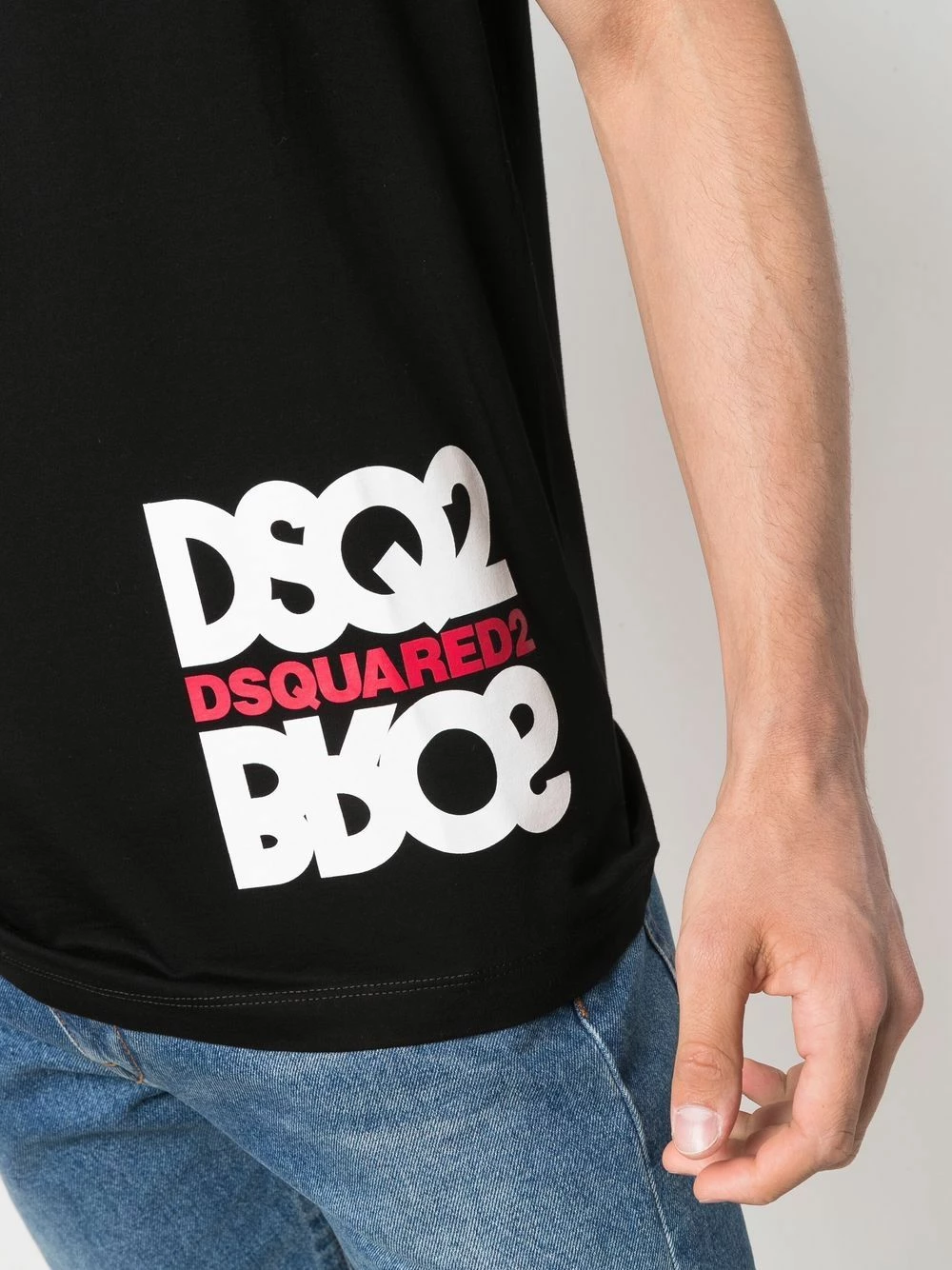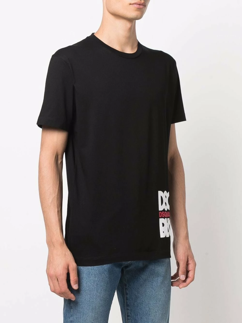 Noir, coton, logo imprimé sur le devant, encolure ronde, manches courtes, ourlet droit.