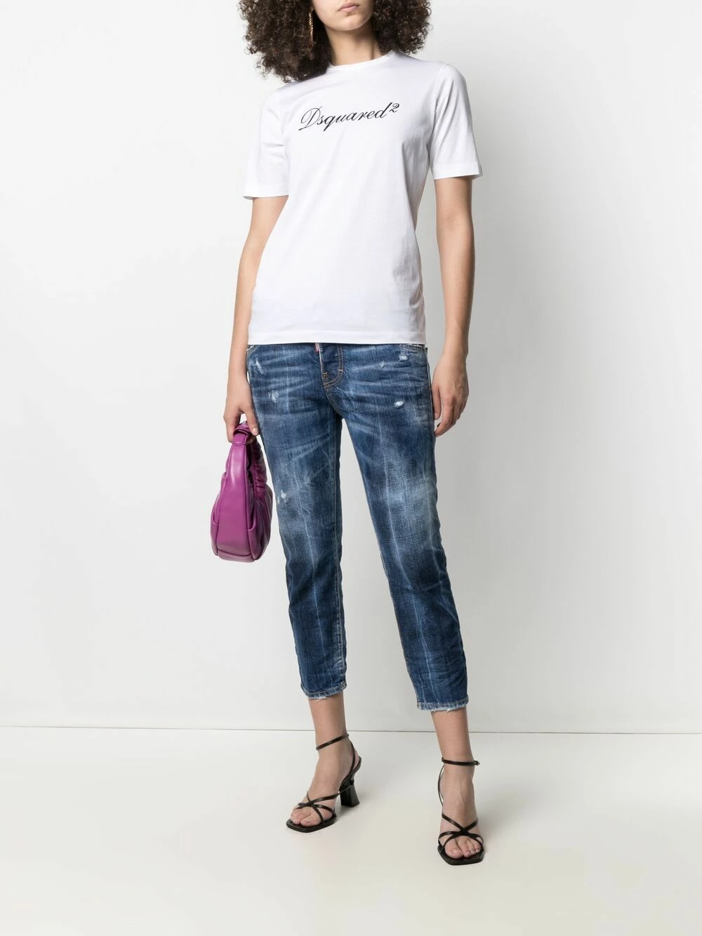 Logo imprimé sur le devant, encolure ras du cou, manches courtes, ourlet droit. Matière : coton.