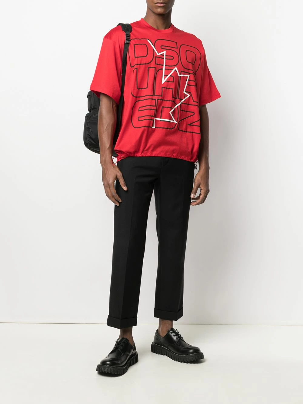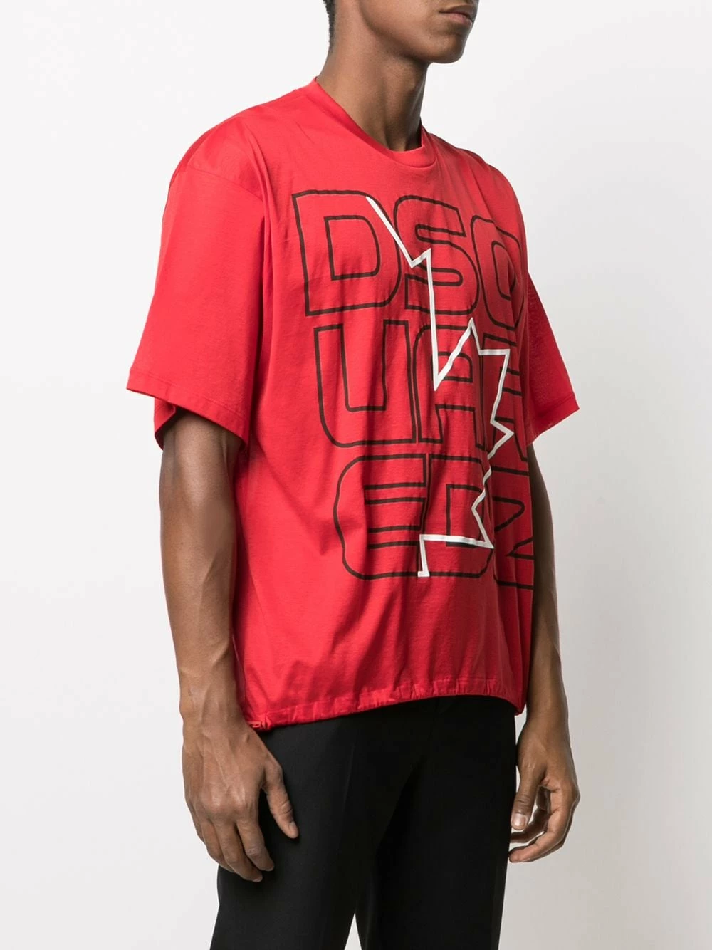 Encolure ras du cou, effet d’épaules descendues, manches courtes, logo imprimé sur le devant, ourlet à lien de resserrage. Matière : coton.