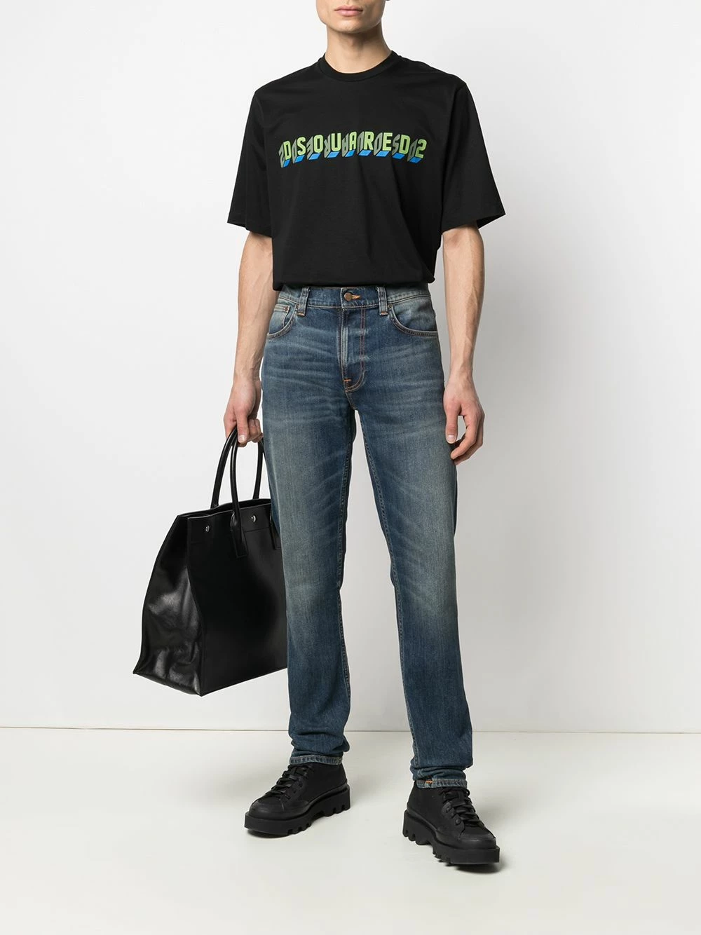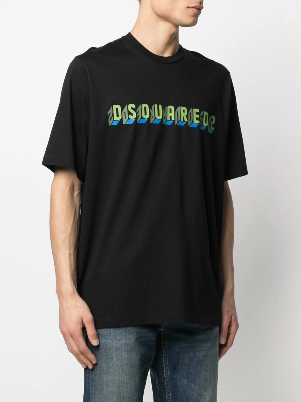 Logo imprimé à la poitrine, tricot point jersey, encolure ras du cou, manches courtes. Couleur : Noir. Matière : coton.