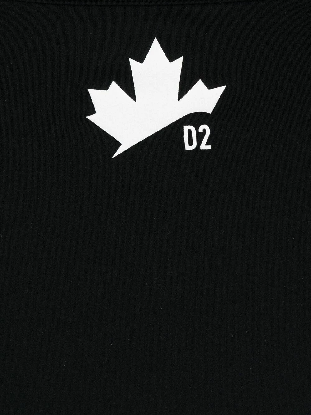 Imprimé feuille d’érable, encolure ronde, manches courtes, ourlet droit, coupe courte. Couleur : noir.