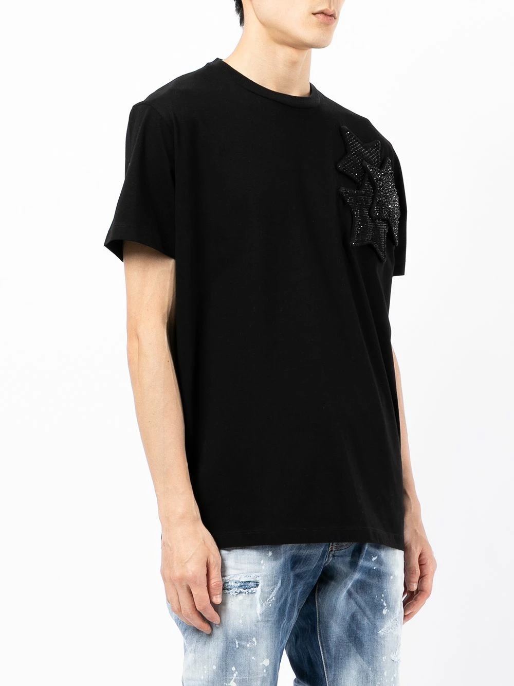 Encolure ras du cou, étoiles métalliques, manches courtes, ourlet droit. Couleur : noir. Matière : coton.
