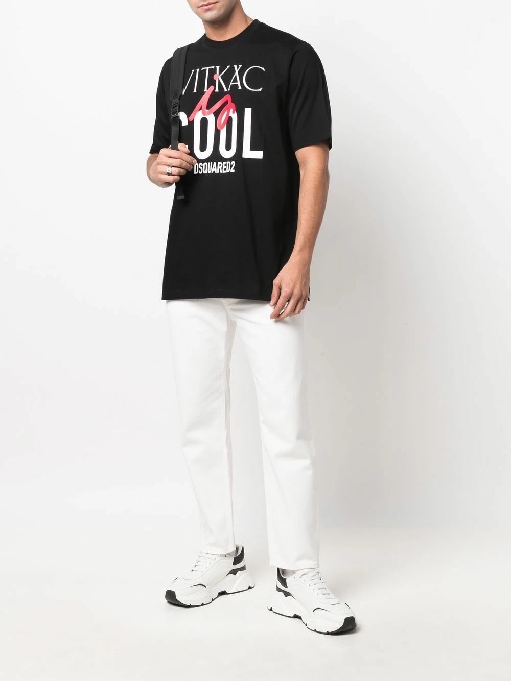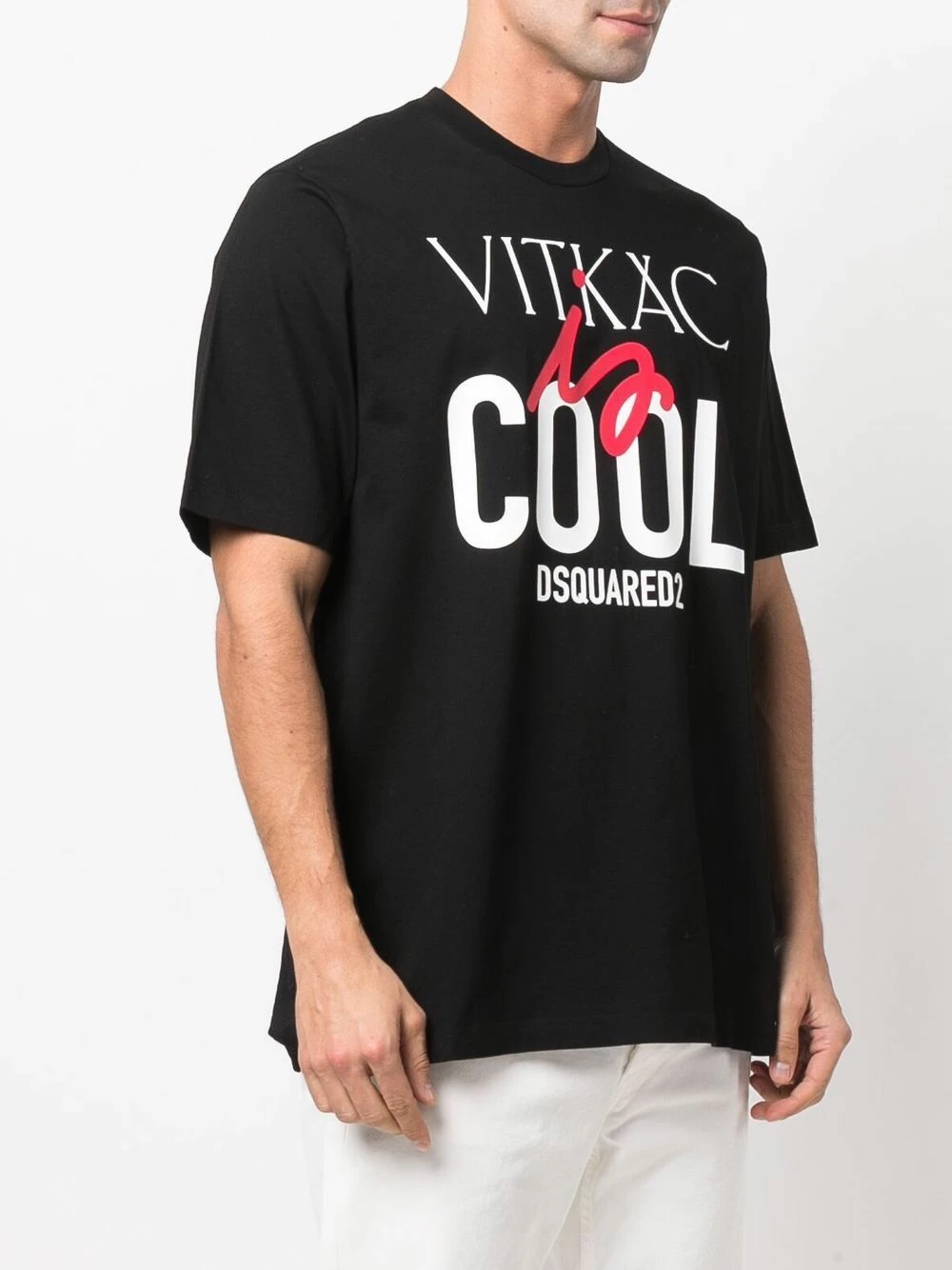 Encolure ronde, slogan imprimé sur l’avant, manches courtes, ourlet droit. Matière : coton.
