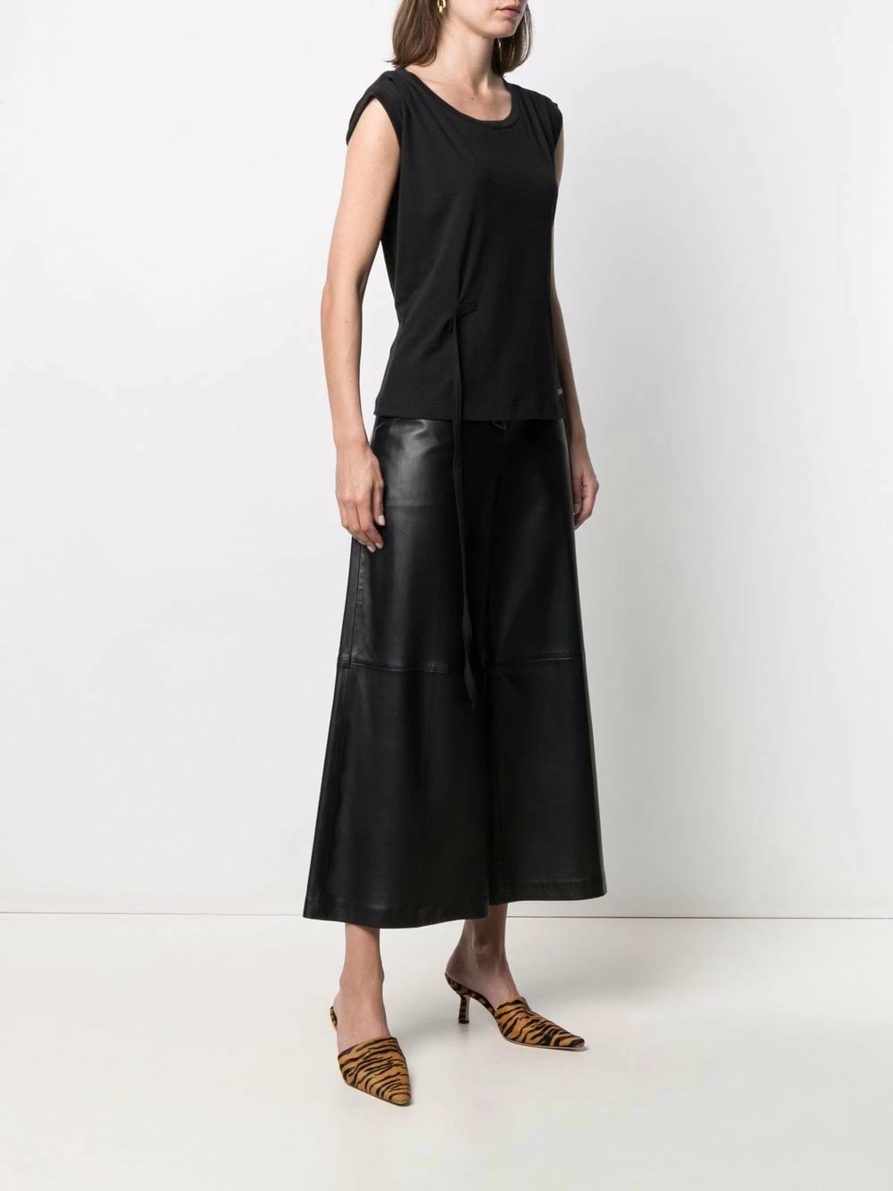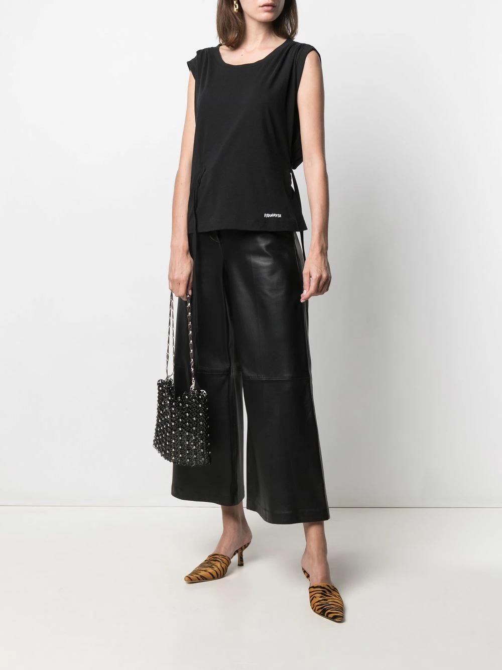Ourlet à logo imprimé, encolure ras du cou, mancherons, taille nouée, ourlet droit. Couleur : noir. Matière : coton.